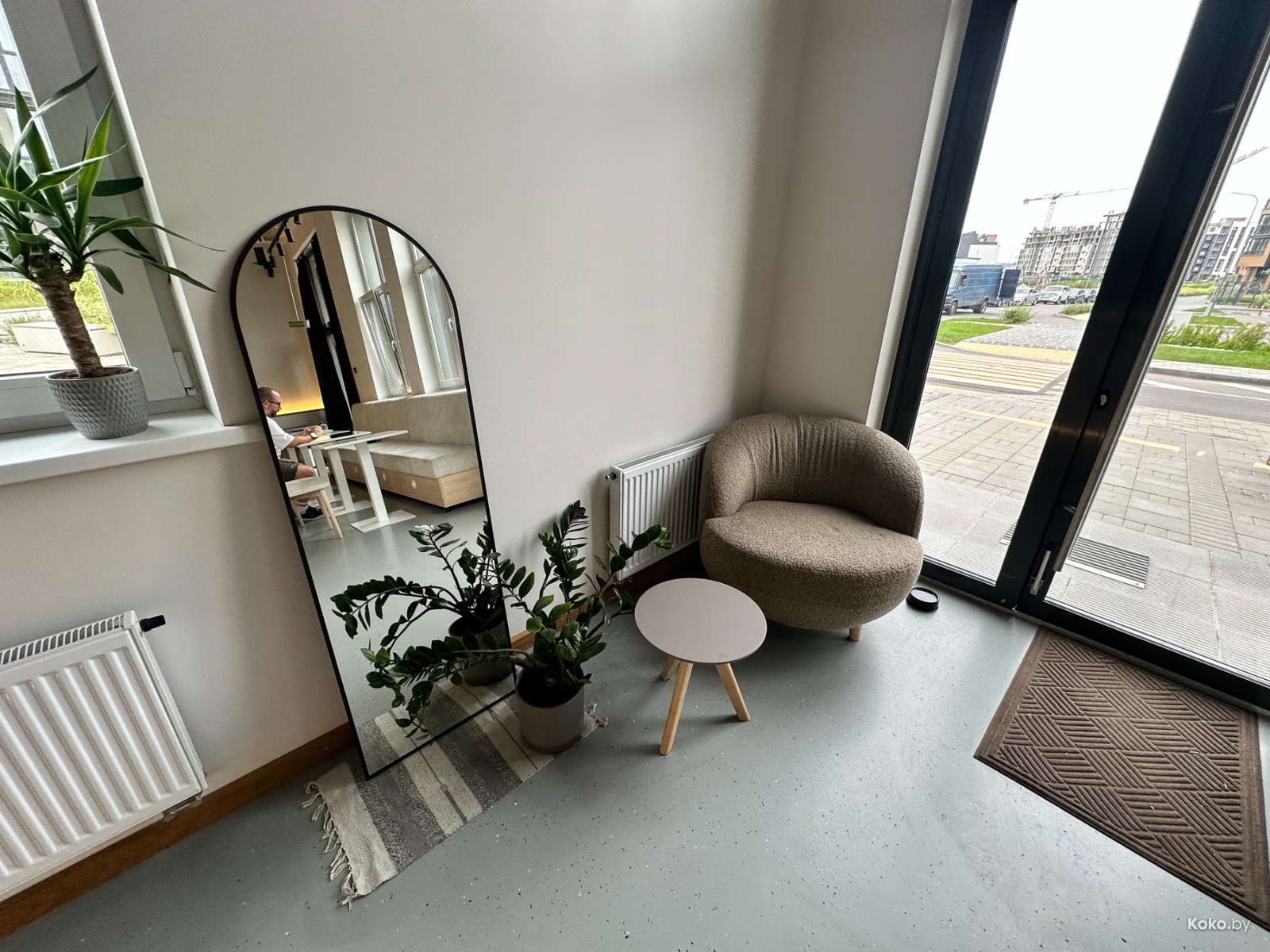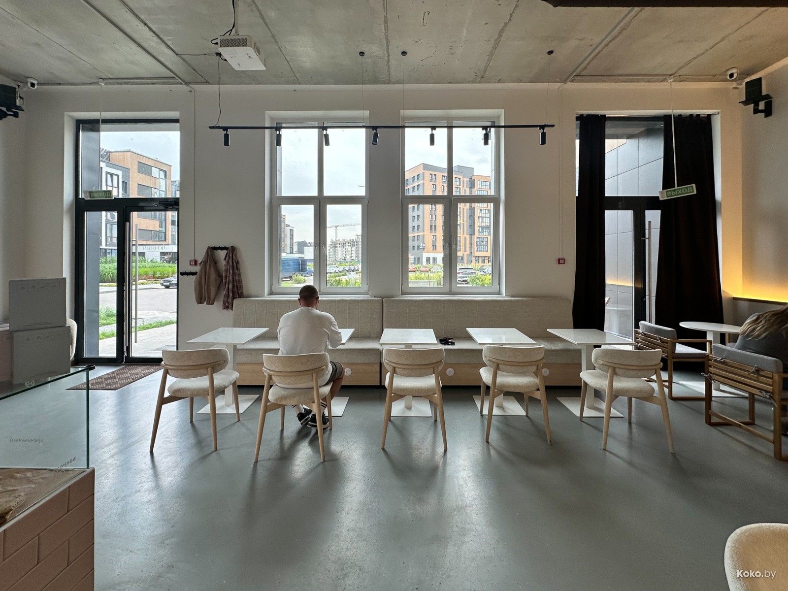 Как в квартире с ремонтом от застройщика: светло, аккуратно, в минимализме, в конце зала мини-зал на двоих. Можно с собачками.