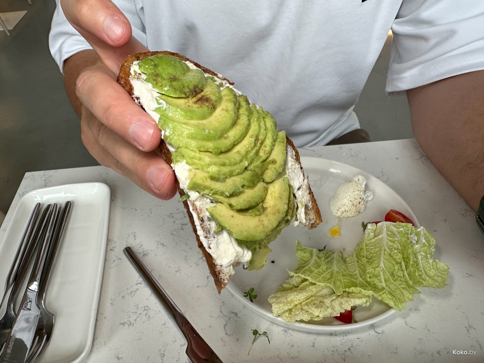 1. Честных размеров авокадо-тост за 17р, как дома собрал, только у них авокадо переспелый, зерновой хлеб не свой - он вкусный.