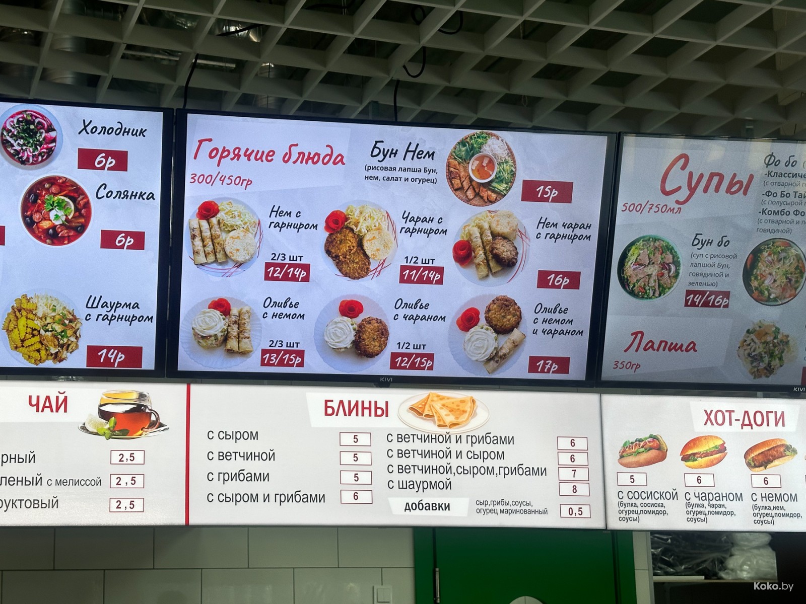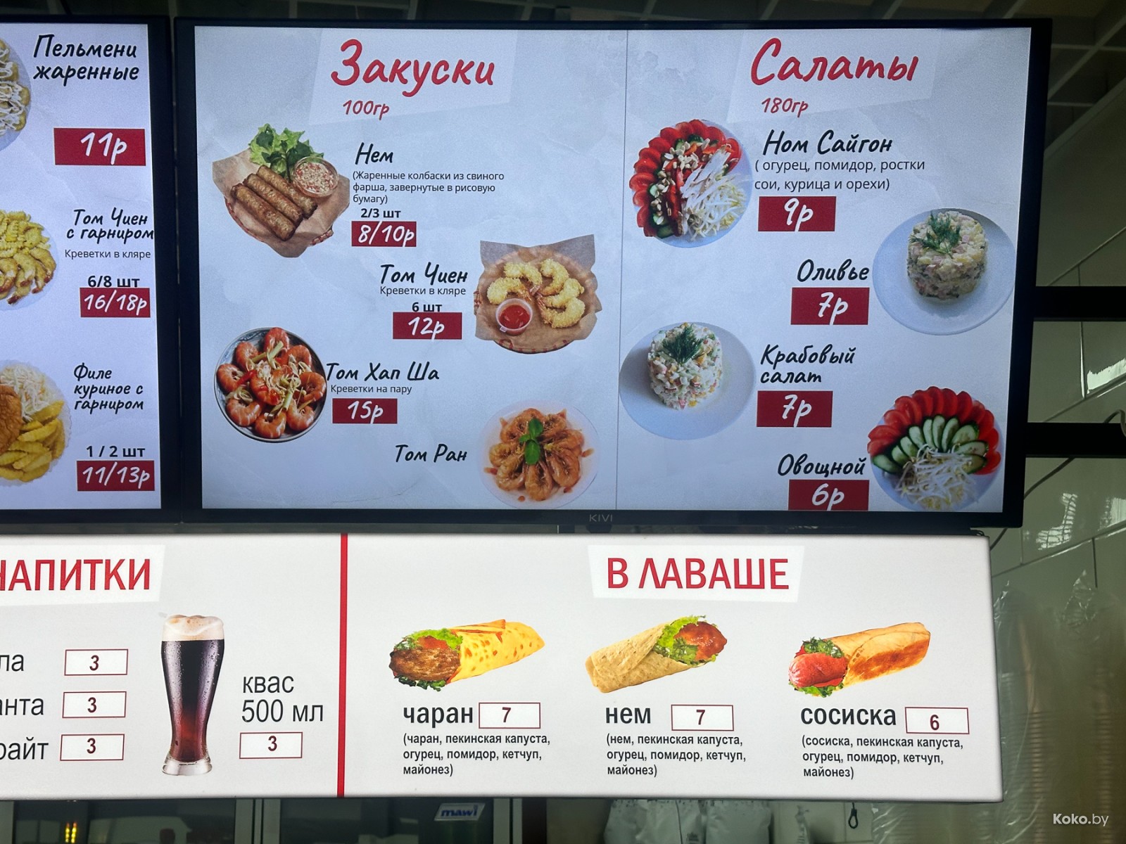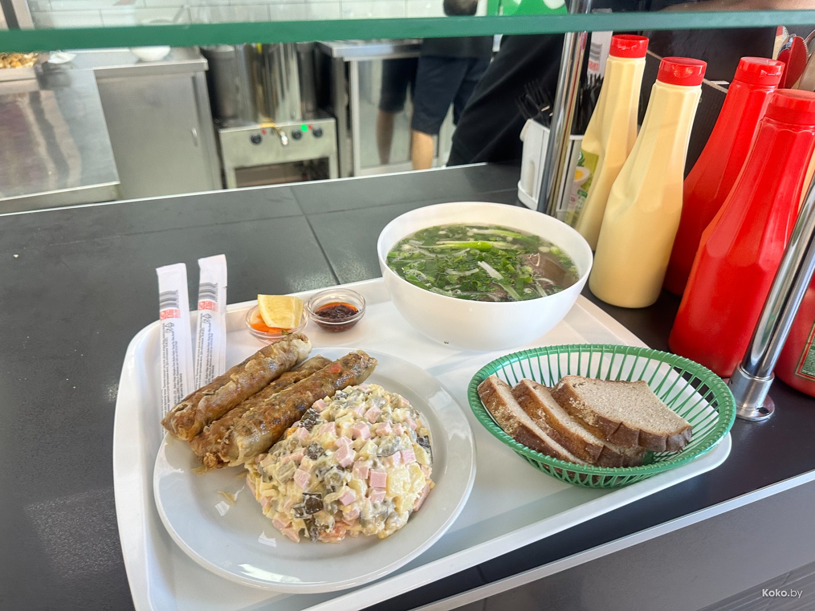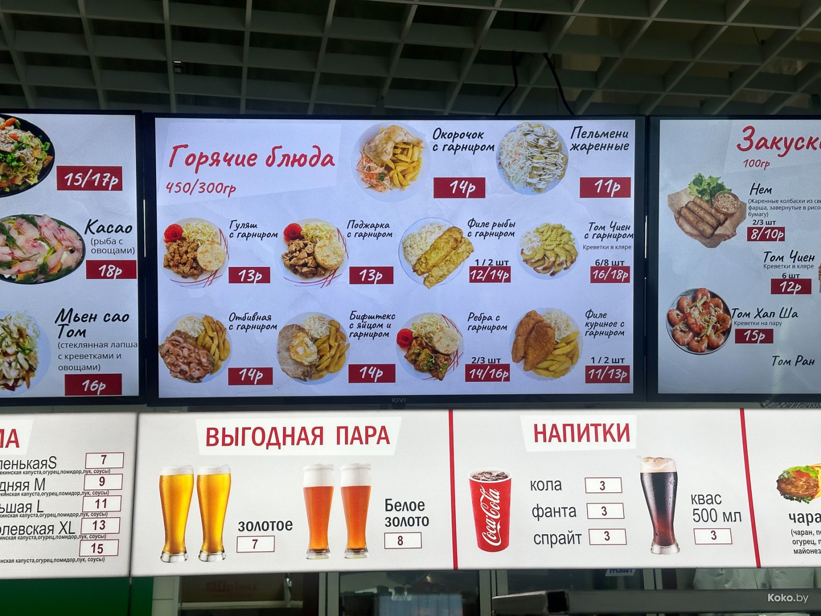 Местами прям дороже, чем в недавнем обзоре фудкорта оптового рынка «Нового Лебяжьего». Тут за морской Том Ям хотят на 3р больше.