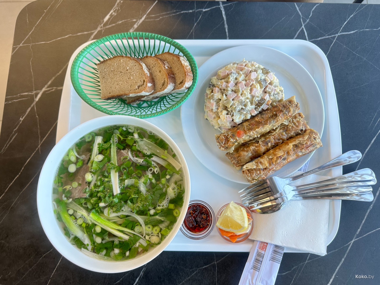 1. Размер Фо Бо за 16р, как в старые голодные времена, на глаз смелый литр. Острое варенье, кусок лимона и уксусная морковка на месте.