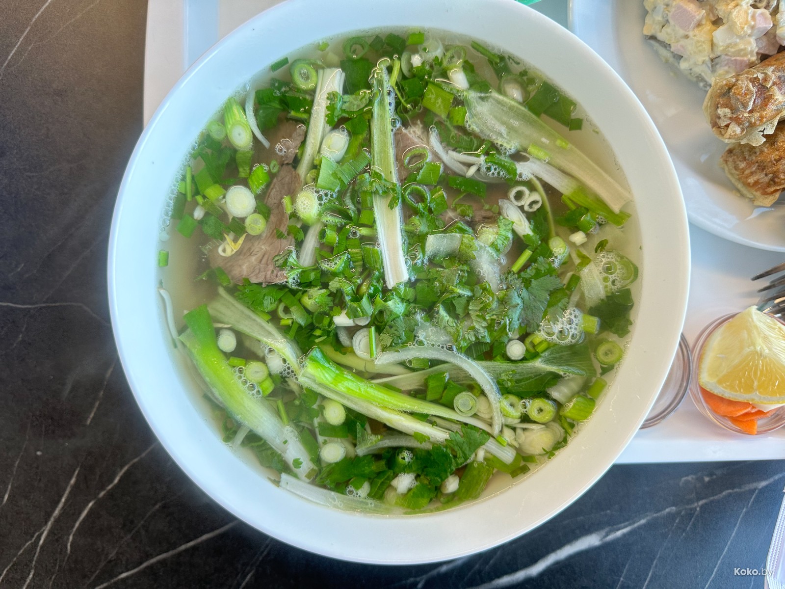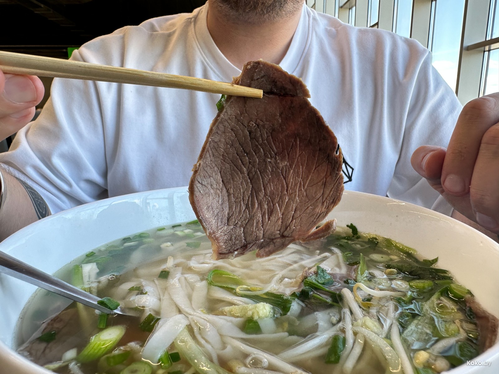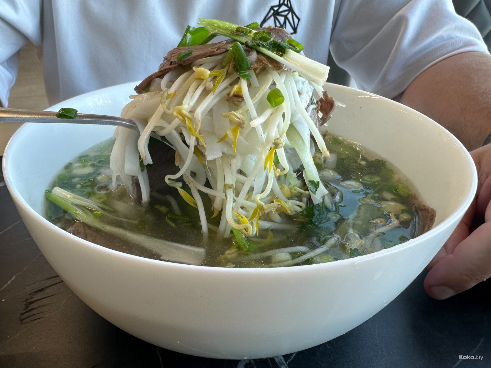 Горсть свежей зелени, бульон - пряный, мягкий, ласкает рецепторы. Тонко нарезанная говядина получилась нежной. Огонь, как вкусно.