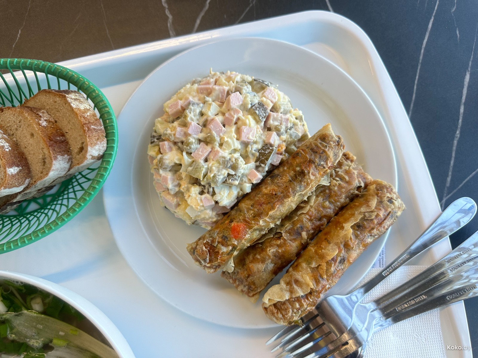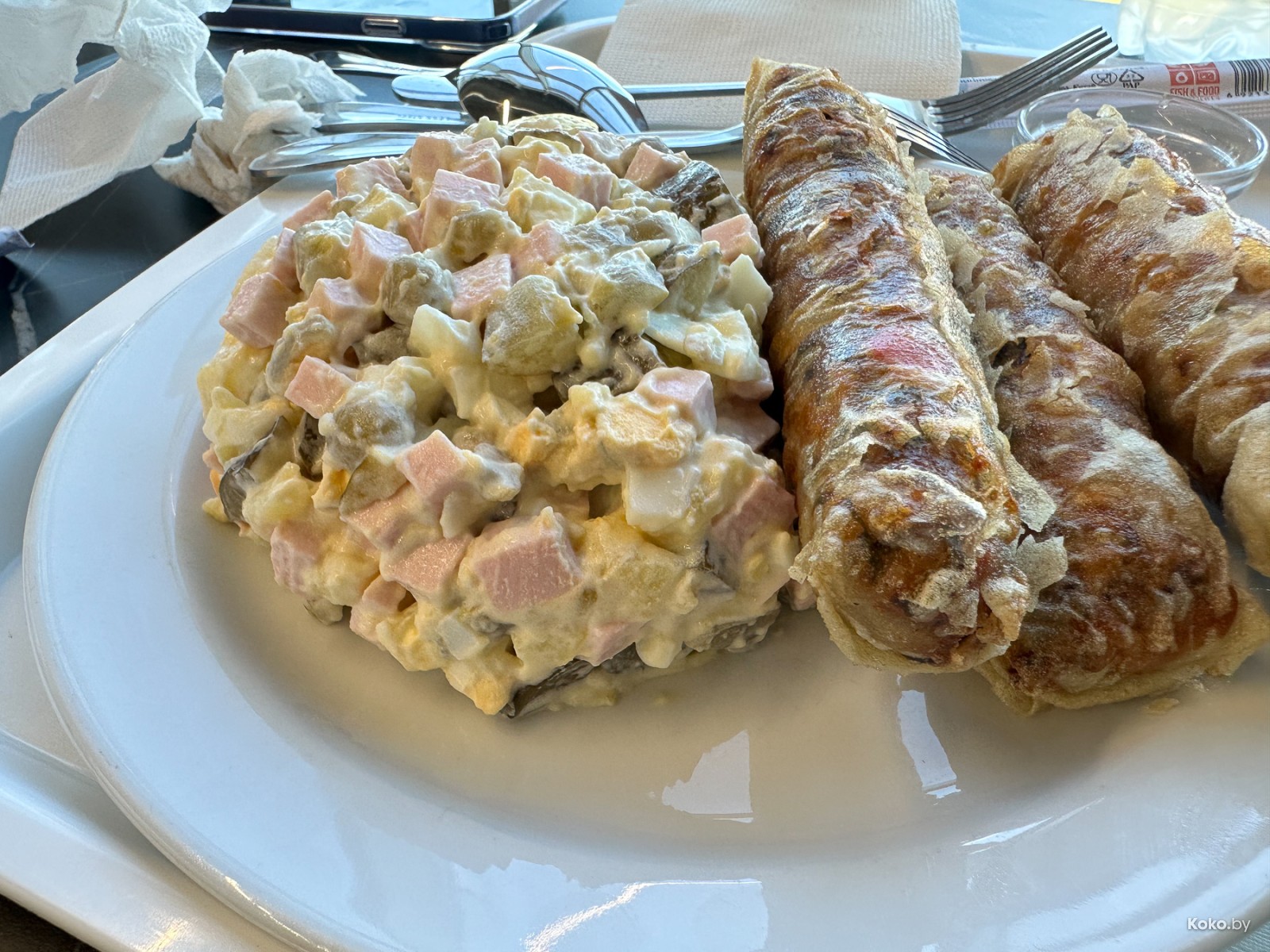 Честная порция усиленного вкусом майонезного салата, немы с овощами и фаршем, идеально хрустящие, без капли масла. Пушка!