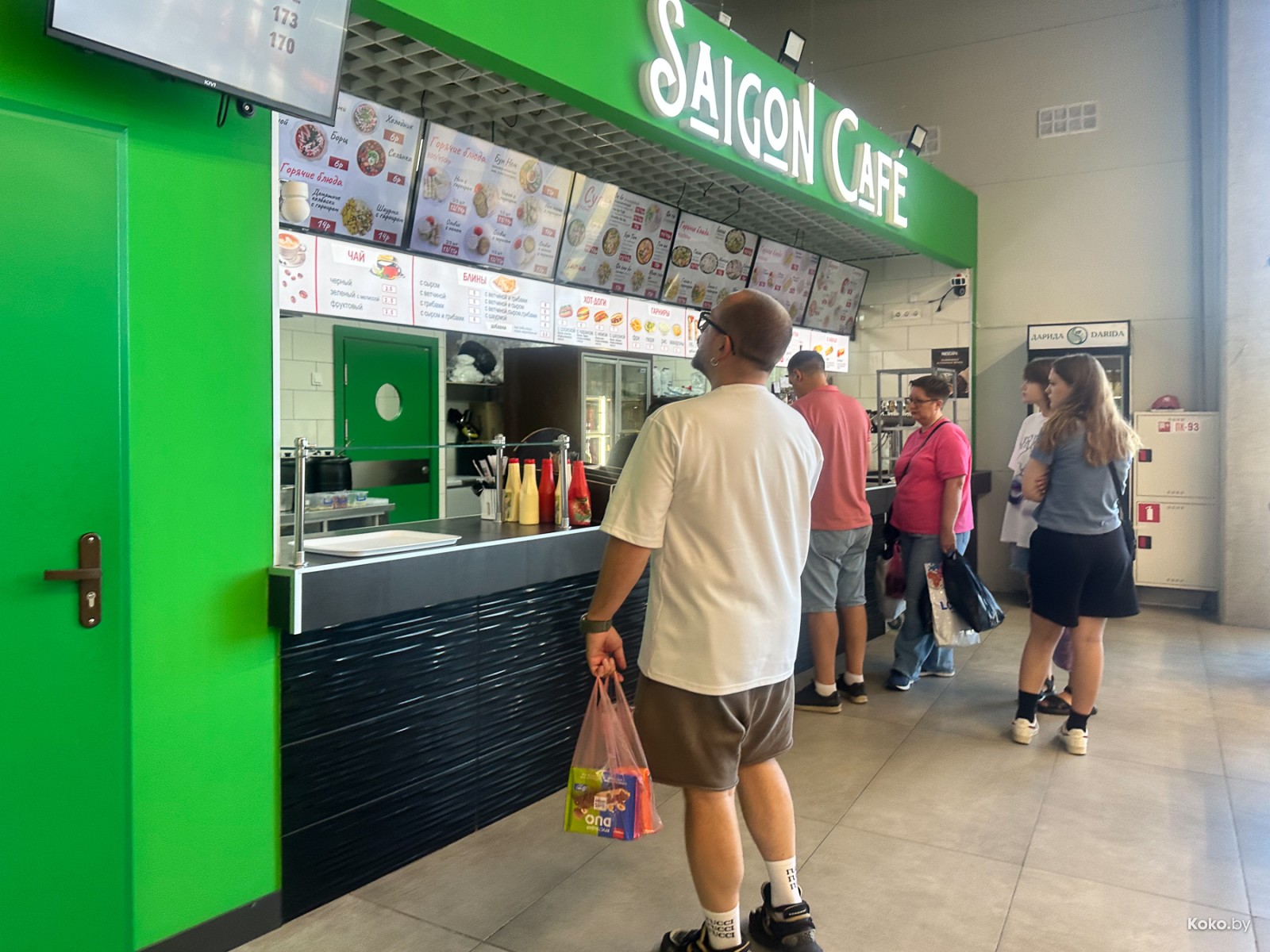 Укрылся он на бесконечных торговых площадях нового вещевого рынка «Экспобел. Пришлось чутка побродить между рядами, чтобы его найти в углу на втором этаже. Это левая часть рынка прямо над котлетно-пловной «Исфара», где всегда очереди из-за доступных цен на домашнюю еду по восточным рецептам. Этот «Сайгон», как и все другие, со стандартной белорусско-вьетнамской едой улиц, а ещё они в шаурму с майонезом корейскую морковку пихают, бррр!
