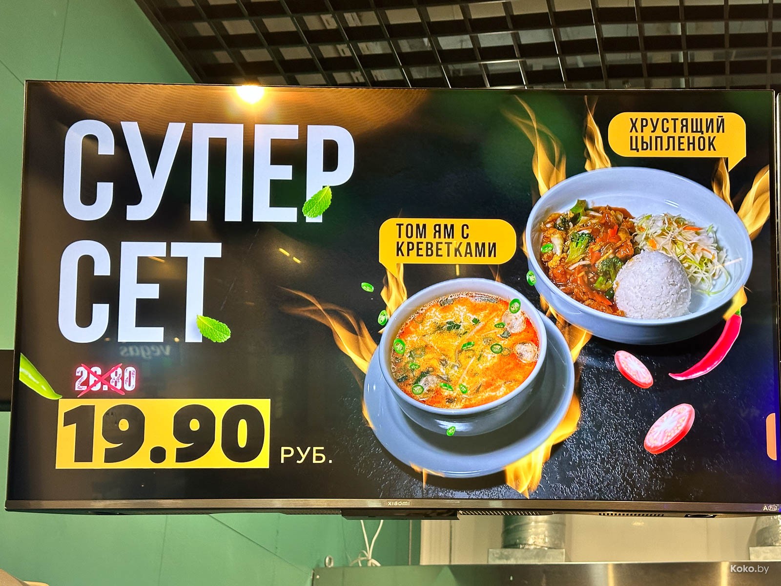 Молодечненское кафе вьетнамской домашней кухни ловко превратилось в сеть, плавно заехав в торговые центры Минска и Лиду на Качана, 29. Домашнее кафе «Фо Бо» известно своими рецептами тайских супов, жареного риса и сочной утки по ценам чуть дороже вьетнамских деревень провинции Тхайбинь. В честь открытия на фудкорте в «Палаццо» запустили гостеприимный поднос еды типа обэд за 19,90р. Что ж, сейчас проверим, не потеряли ли они хватку.