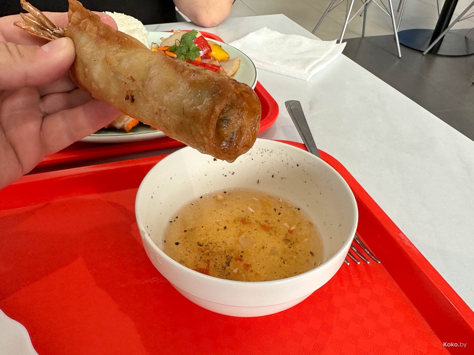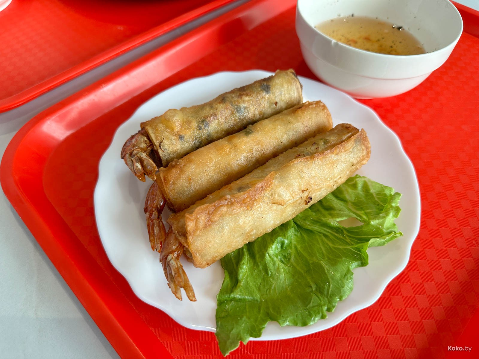 2. Вьетнамская хрустящая торпеда в количестве трёх штук за 16р, подаётся с уксусной пряной водой со специями, её пить не рекомендую.