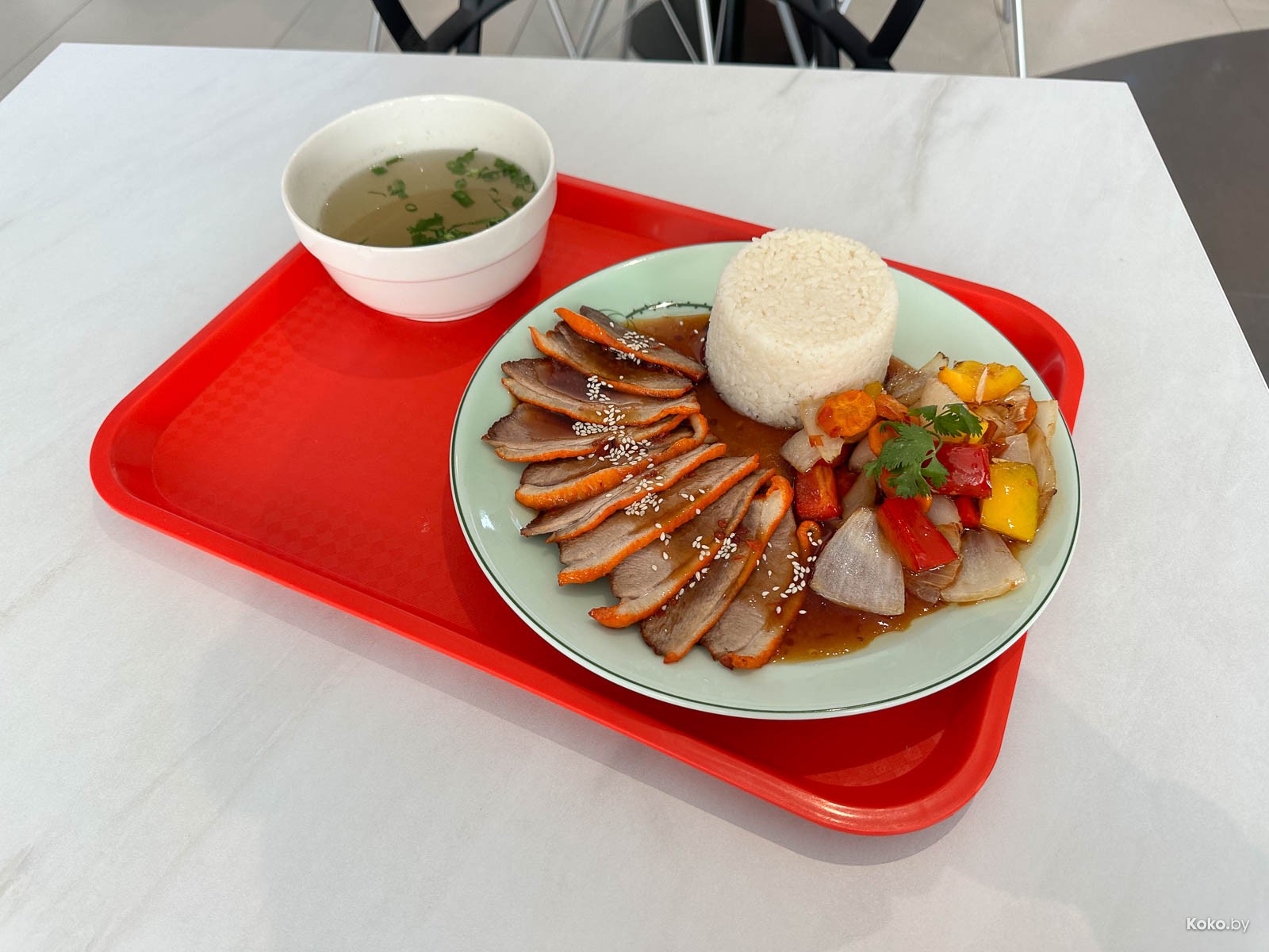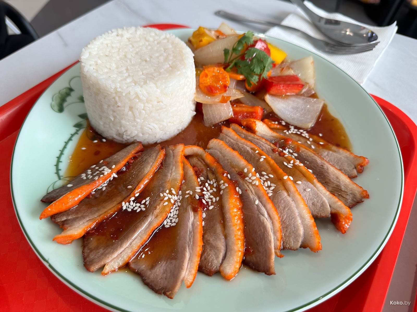 Сентябрь начался не с тыквенного рафа с корицей, а наперегонки китайцев с вьетнамцами, кто первый займёт помещение хоть где. Вчера протестил заманчивое предложение от нового «Фо Бо» - поднос еды за 19,90р, а сегодня возьмёмся за набор Сен Ханойской утки. Её подают, как карпаччо с оранжевой корочкой, в луже сладко-ягодного соуса, с двумя видами гарниров, миской наваристого говяжьего супа и чаем всего за 21р. Оливье, борщей и рёбрышек они не подают.