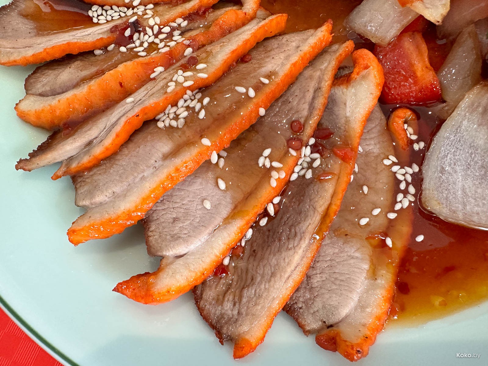 Филеха утки оказалась чутка суховатой, даже забралась между шестым и седьмым зубом. Если обильно обвалять в сладко-липком соусе получается вкуснее. Самая вкусная утка была в ресторане «Сезоны».