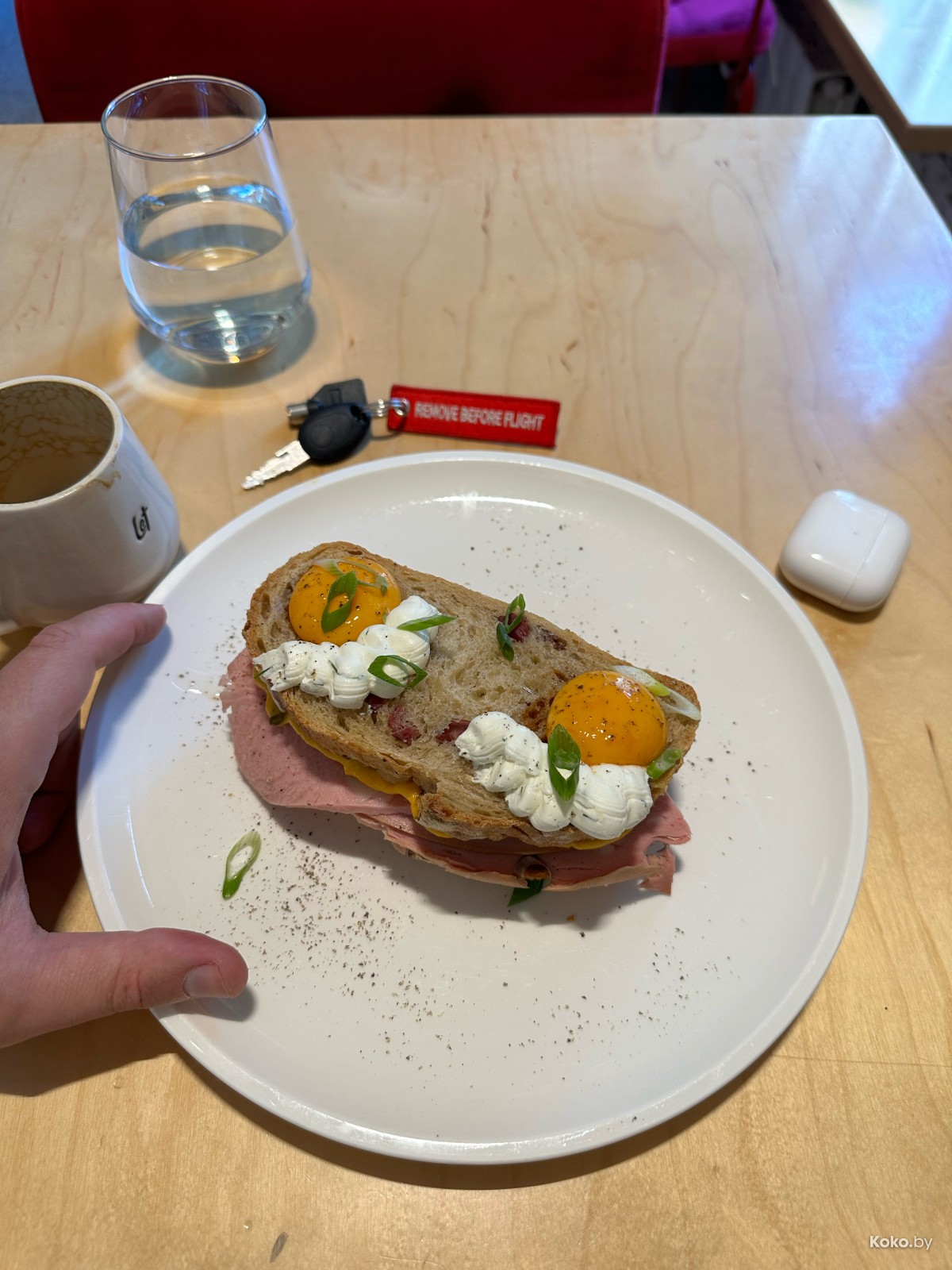 В «Лет ит би» неистово рекомендую бутерброд на пышном пивном хлебе с охлаждённой мортаделлой, двумя видами сыра, луком конфи, с двумя соусами и маринованными желтками всего за 18р. Беру только его!
