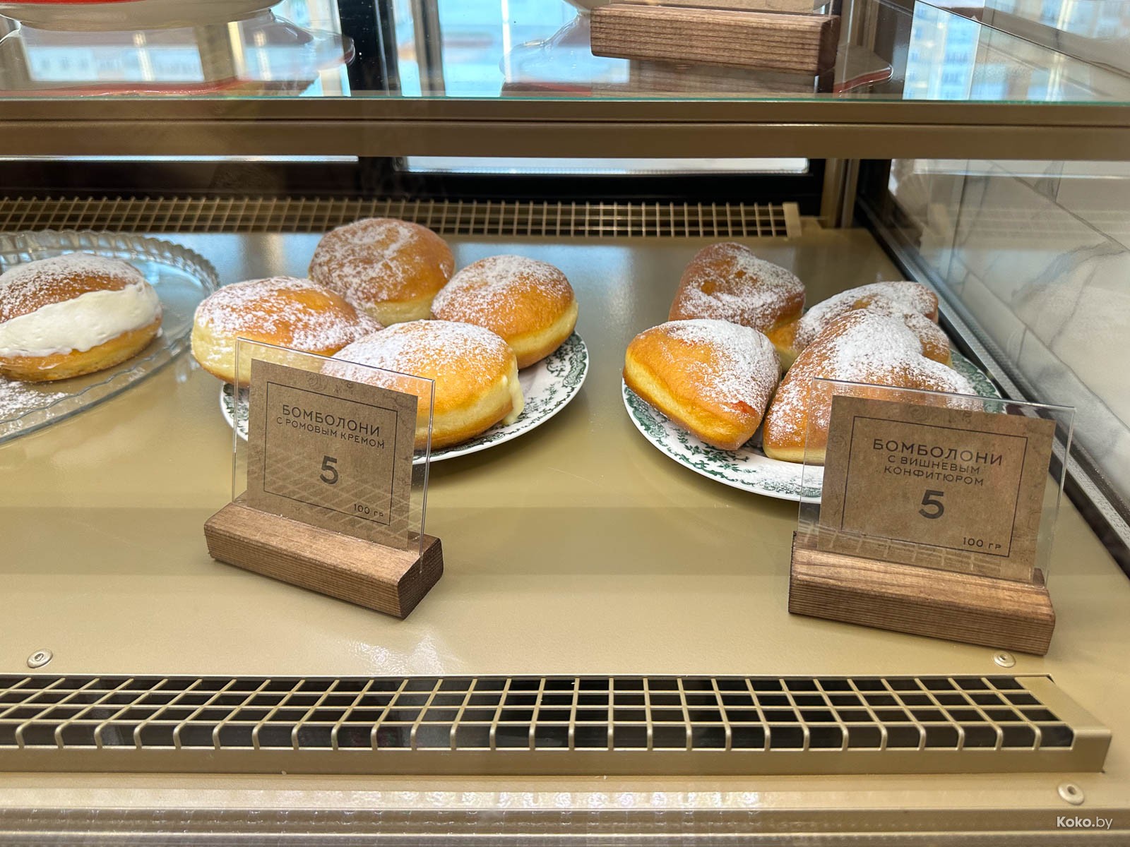 2. Бомболони за 5р прямой родственник берлинского пончика. Воздушно-нежное, пышно-тонкое тесто внутри заполнено холодным ромовым кремом с цитрусовыми нотками. С эспрессо на 9 кокобаев.