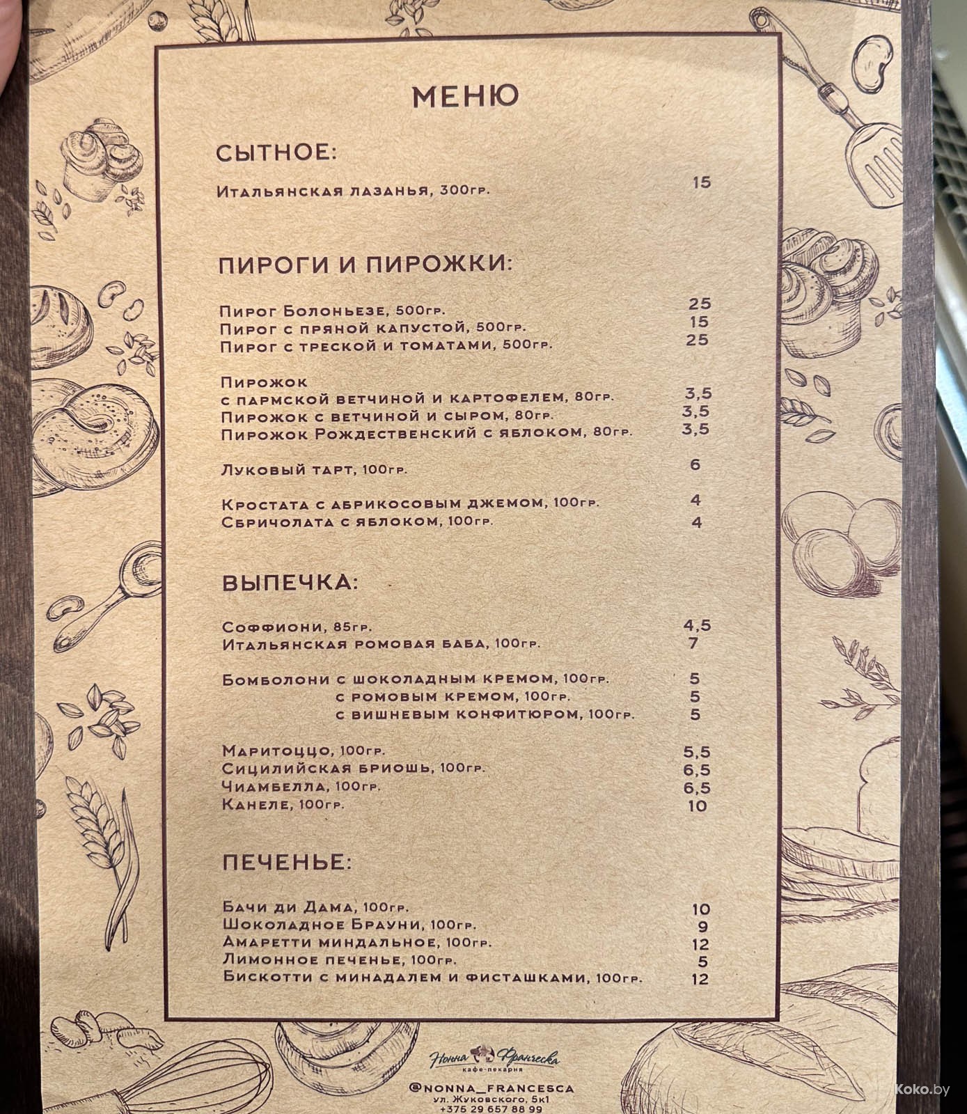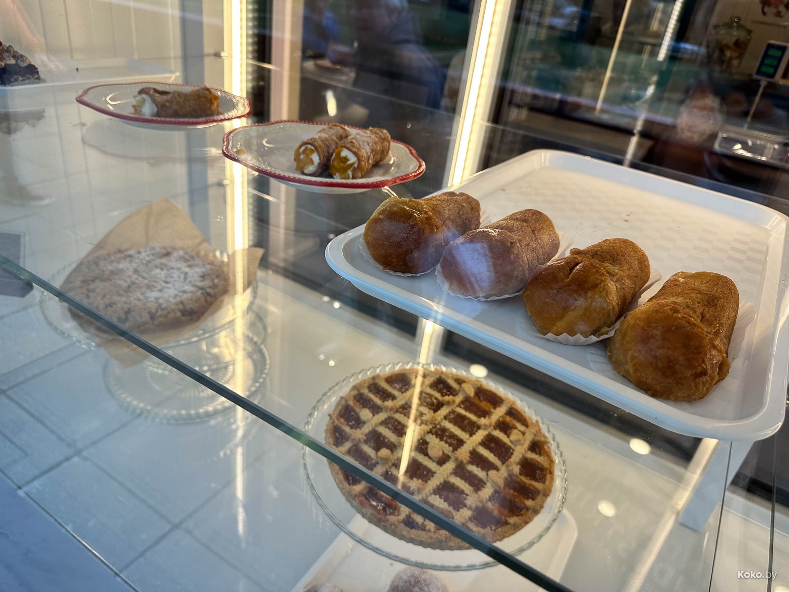 Судя по остаткам былой роскоши и потоку гостей, шарики на дверях сделали своё дело. В меню итальянские рецепты пирожных, пирогов, та самая лазанья, но где хоть какой-то хлеб? Или несладкая еда, хоть бутер.