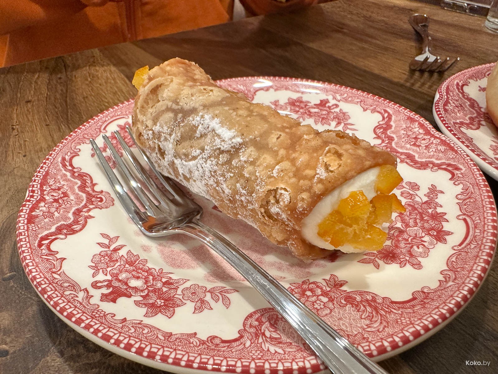 3. Сицилийская припудренная трубочка - это канноли за 5р из пупырчатого хрустящего теста с творожной начинкой, в которую натёрли много цедры апельсина. Вкусно, на любителя рикотты и цитрусовых.