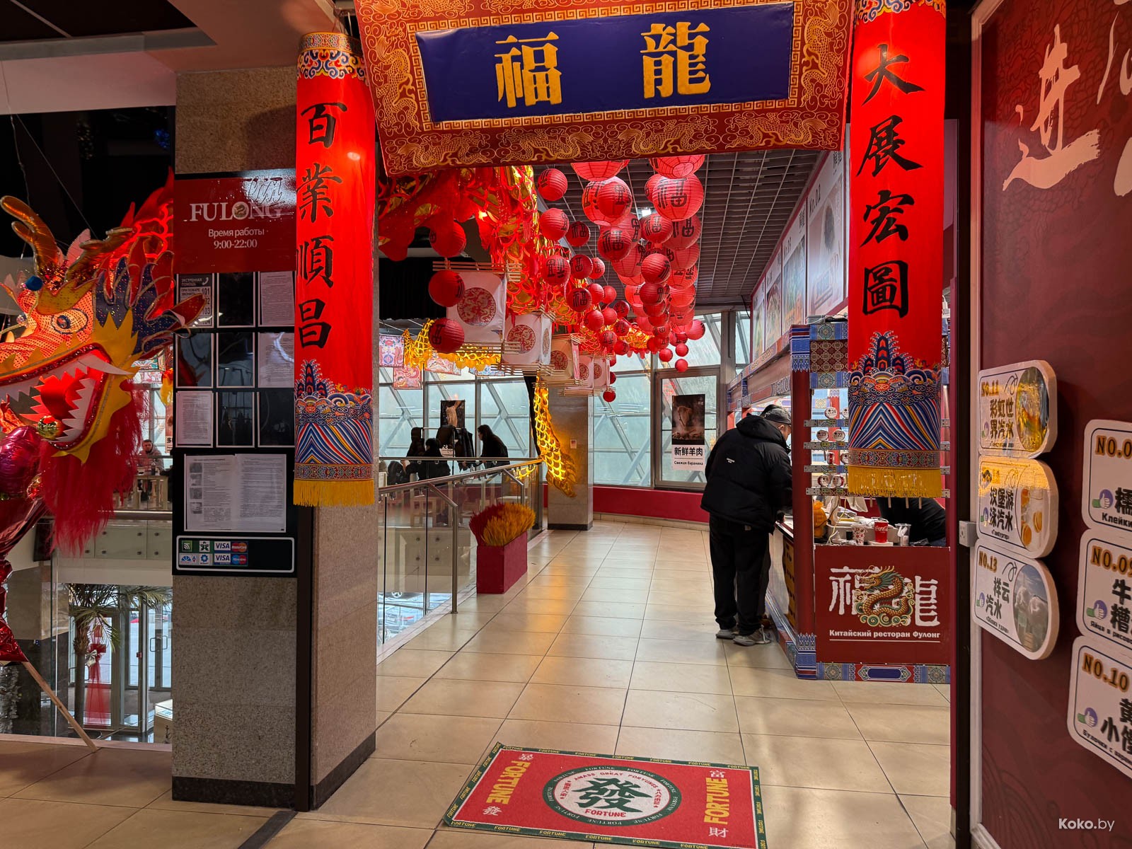 Формат, как мы любим: выбираешь из меню что угодно, это всё равно будет много лапши в разном бульоне, если повезёт - с мясом. Дракон летит под потолком новой лапшичной «Фулонг», меню которой по мотивам «Кунг-Фу Панда». Как всегда в китайских столовых с маленьким меню, половина уже на стопе, выбираем из того, что есть, плюс лимонад Панда. Да, китайский ленивый дракон забрался на второй этаж ТЦ «Европа», где было кафе «Чаплин».