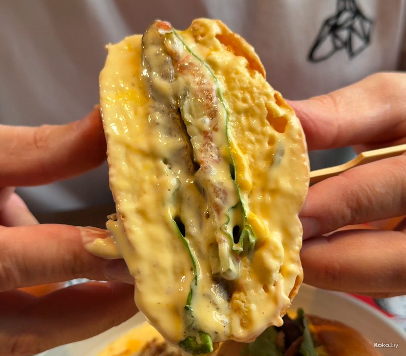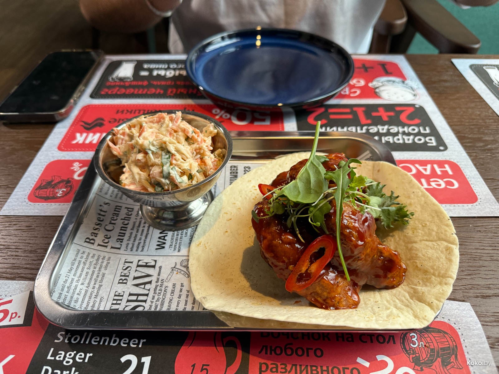 4. Из крыльев советую те, что в хрустящей панировке, облитые липко-сладким соусом Буффало за 21р с салатом из капусты с морковкой.