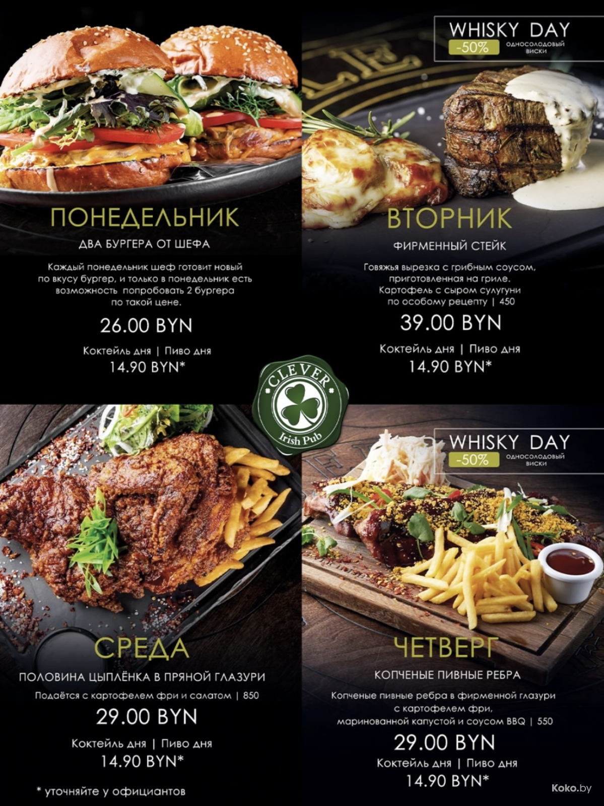 Как в «Клеверке», «Коптильне» и «Лет ит би» по дням годные акции. Напоминаю, что алкоголь - зло, пьянство не одобряю, не поощряю и осуждаю! Протестим, как у них по еде с точки зрения не закуски.