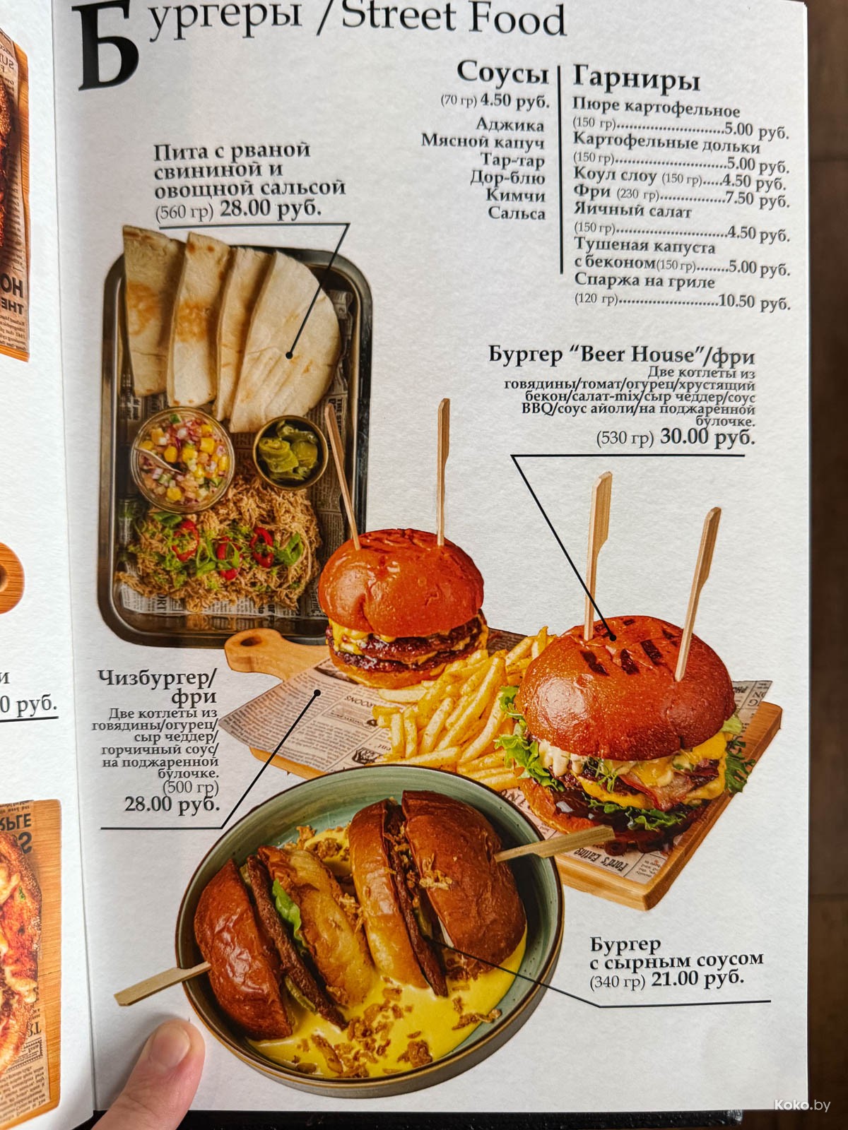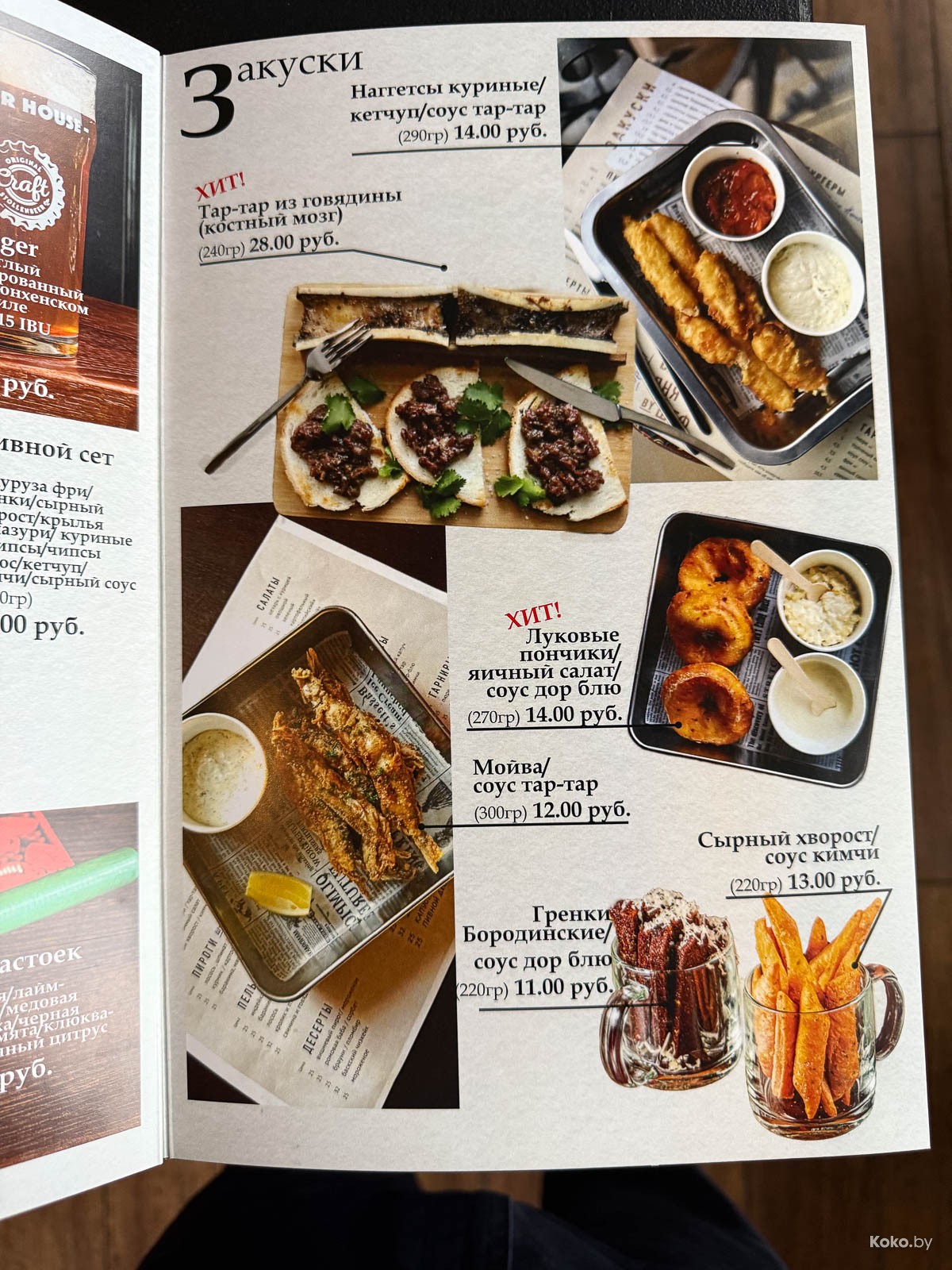 Всё в картинках, цены чуть ниже реально пивных ресторанов. Чисто пивные блюда и пара пинс от 21 до 29р по-грузински с барашком в зире.