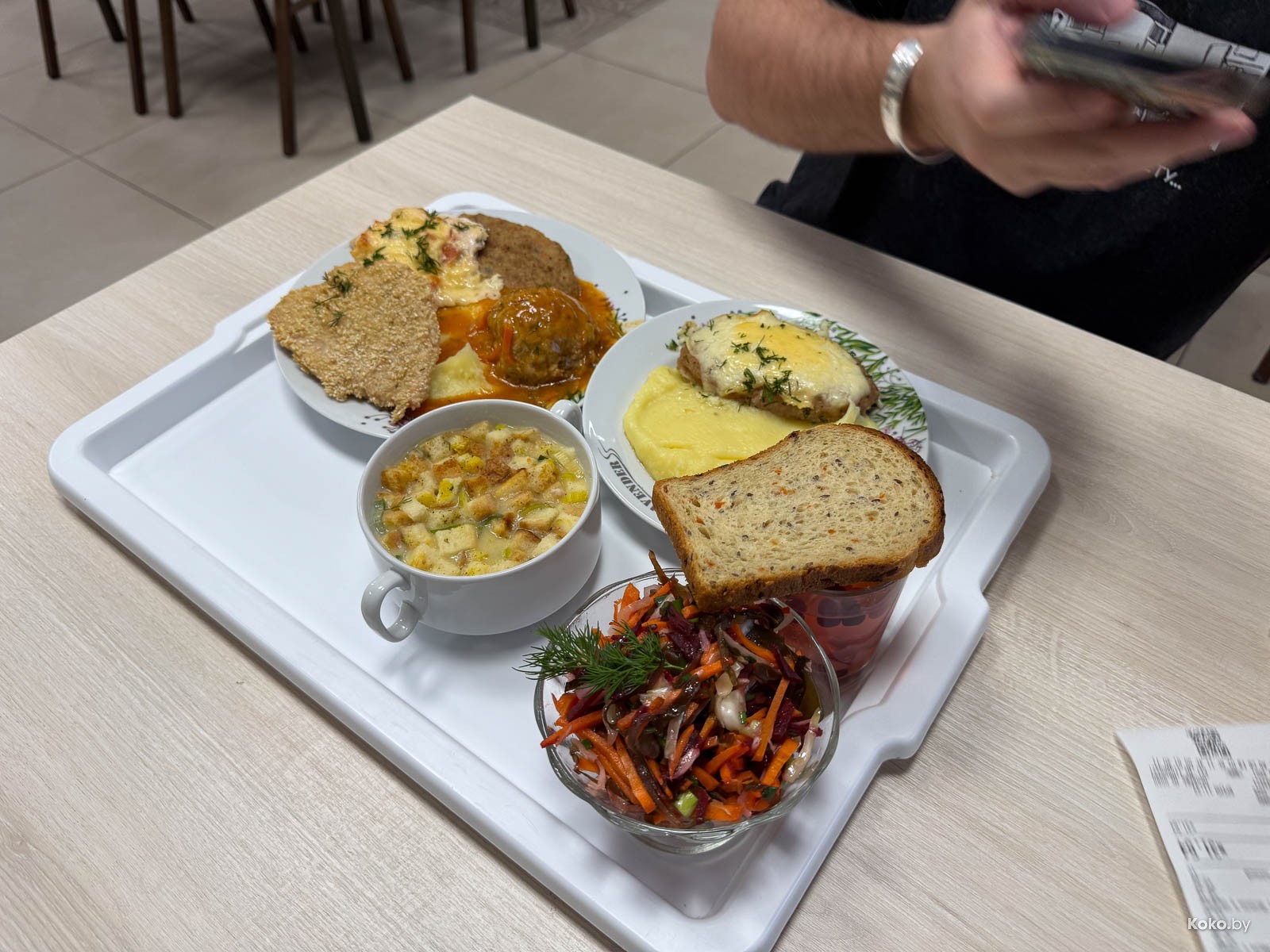 Тезисами и по делу: обед - топ за эти деньги, можно брать навынос и дома не готовить. Первое место столовой аэропорта переходит к кафе государственного агентства со сложной аббревиатурой.