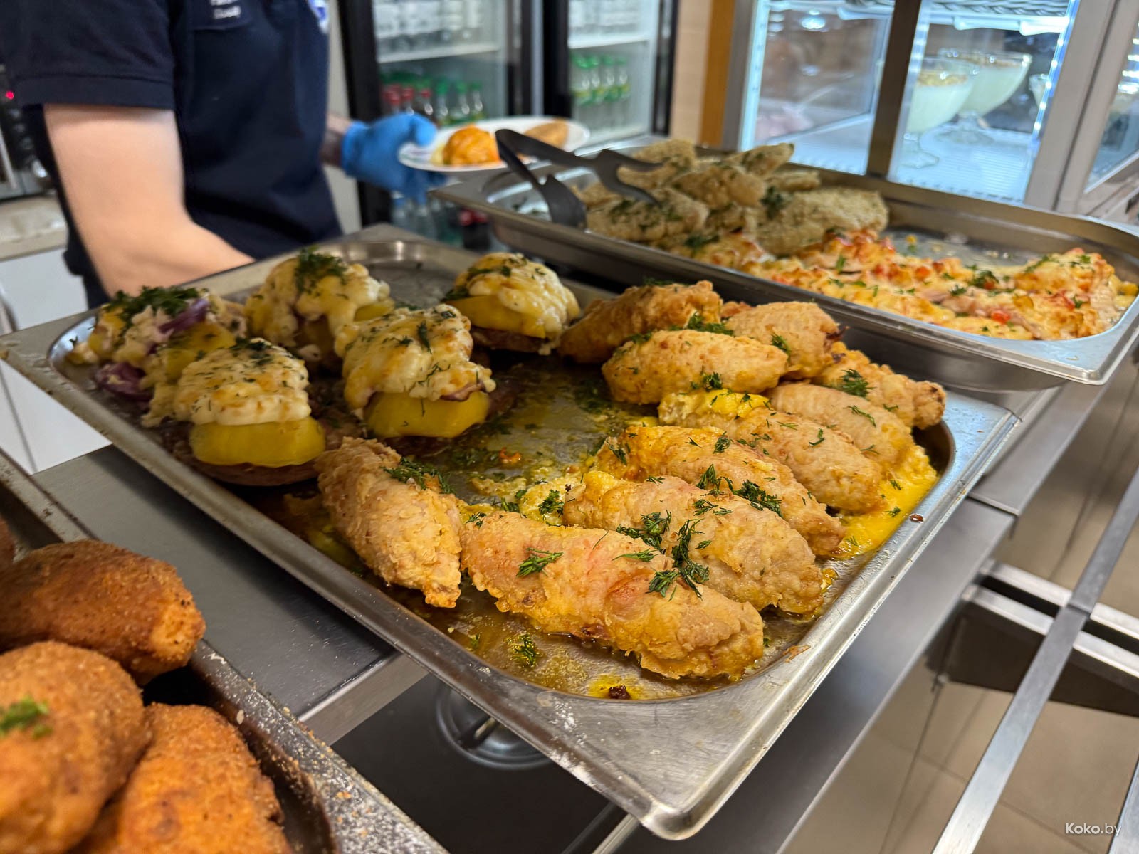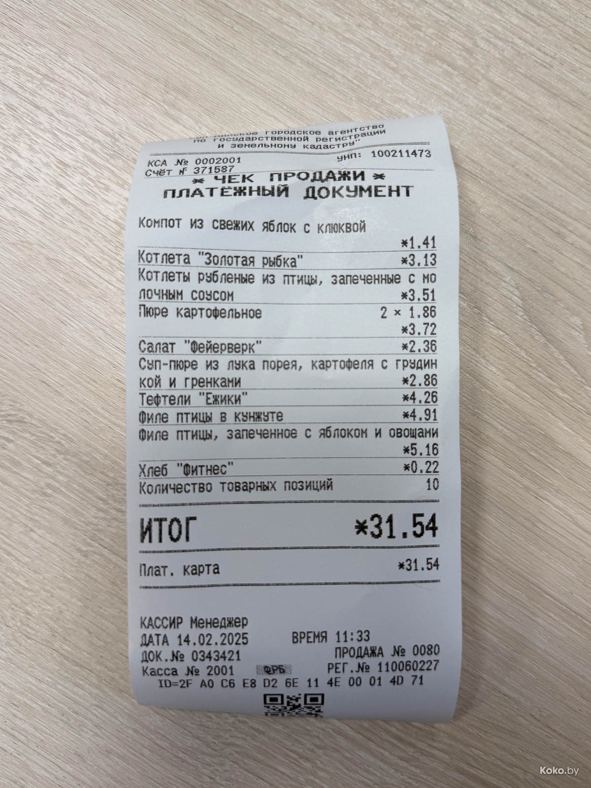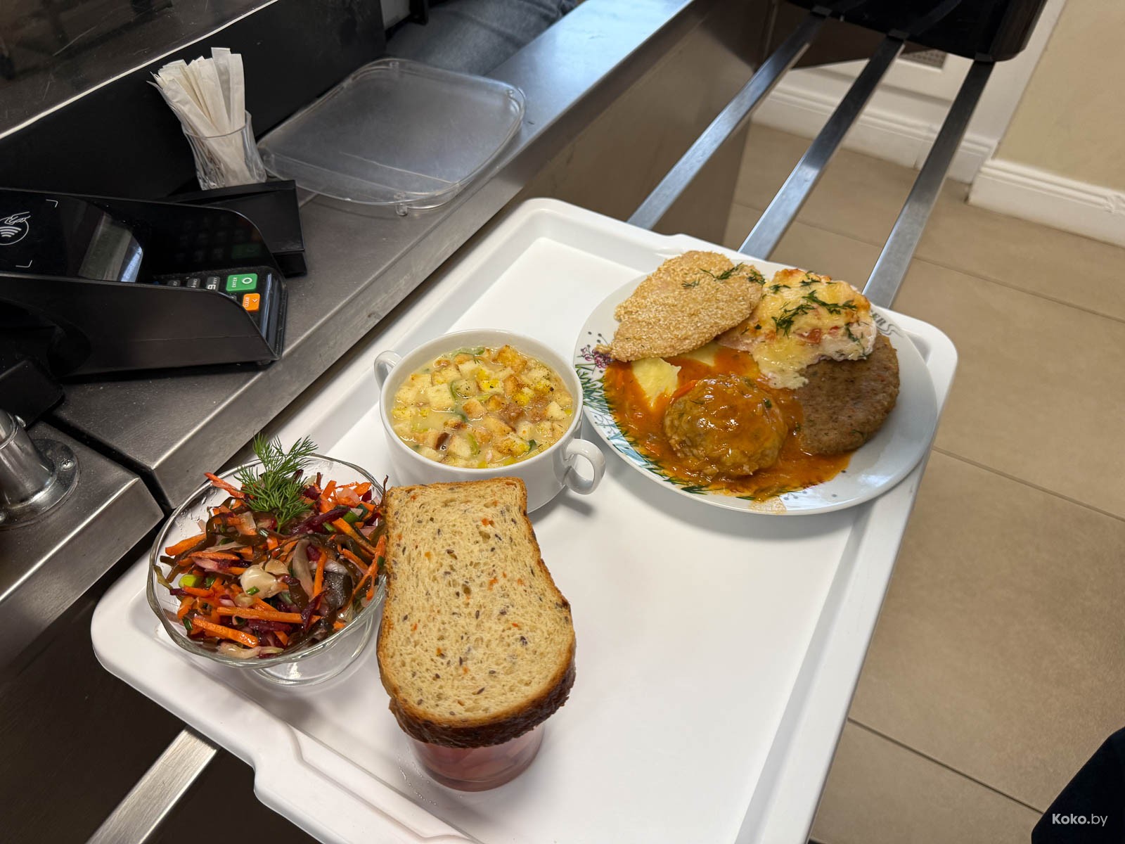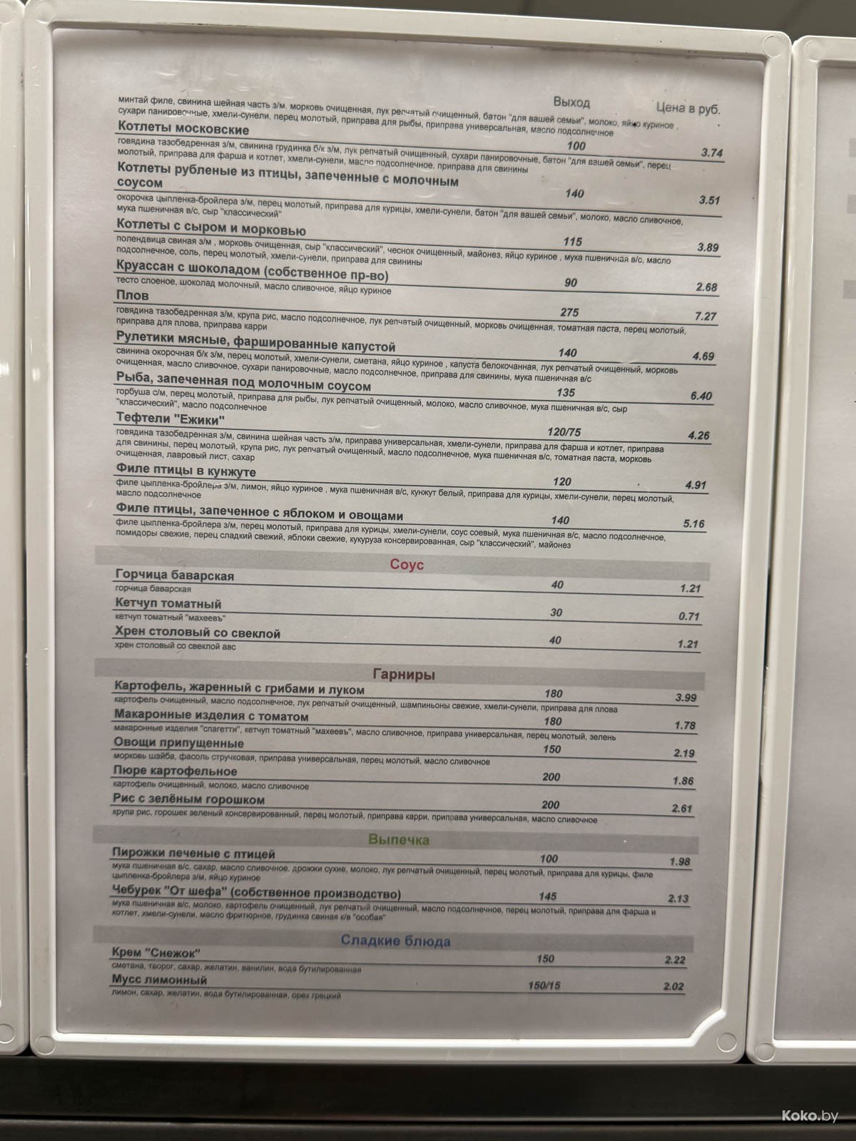 Ого, в хлебном меню самый народный батон из Слуцка на 9 кокобаев.