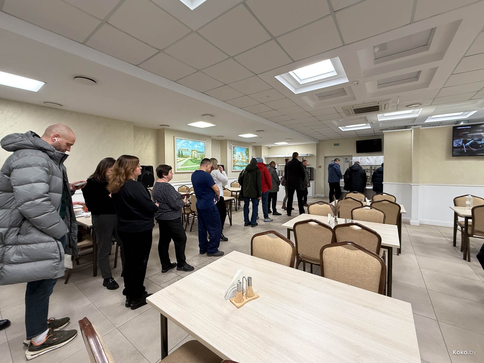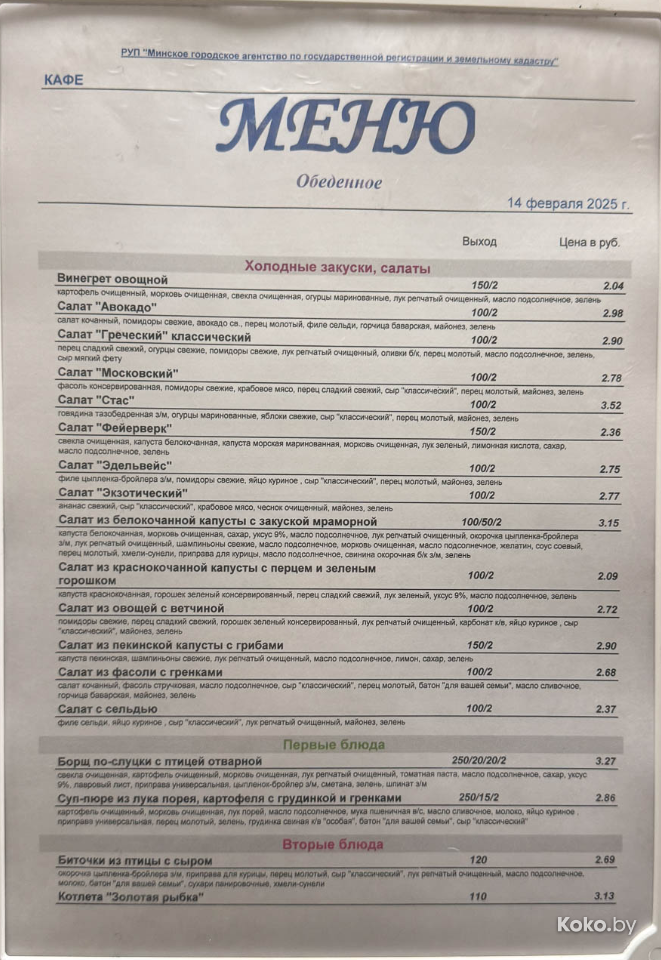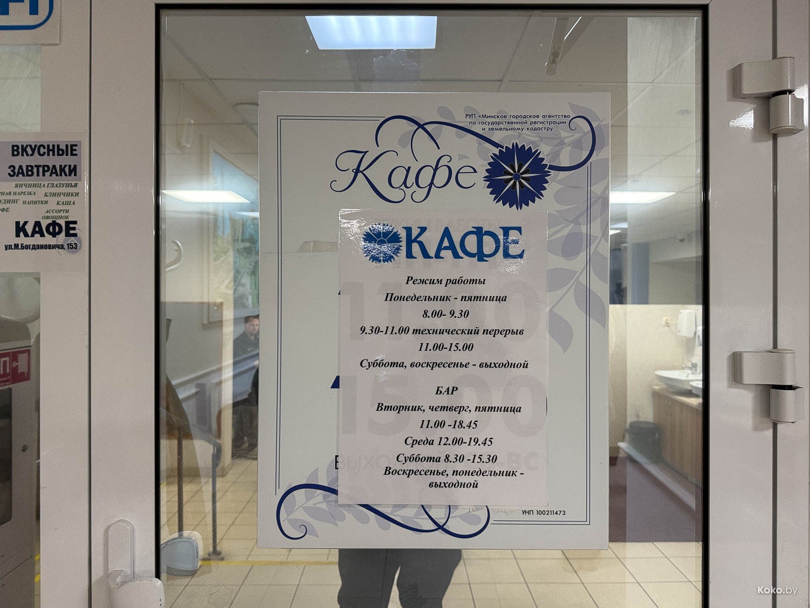 Побродивши по залам, с первого раза по запаху нашли столовую проапгрейдженную до уровня кафе там, где помогают со сделками по имуществу в «Минском городском агентстве по государственной регистрации и земельному кадастру». Кафе под вывеской просто «Кафе» работает с 8 ноль-ноль до 19 часов, ходят слухи, что здешние повара отменно готовят за скромные деньги. Типа за первое, второе и компот до 16р, решительно намерен проверить эту легенду.