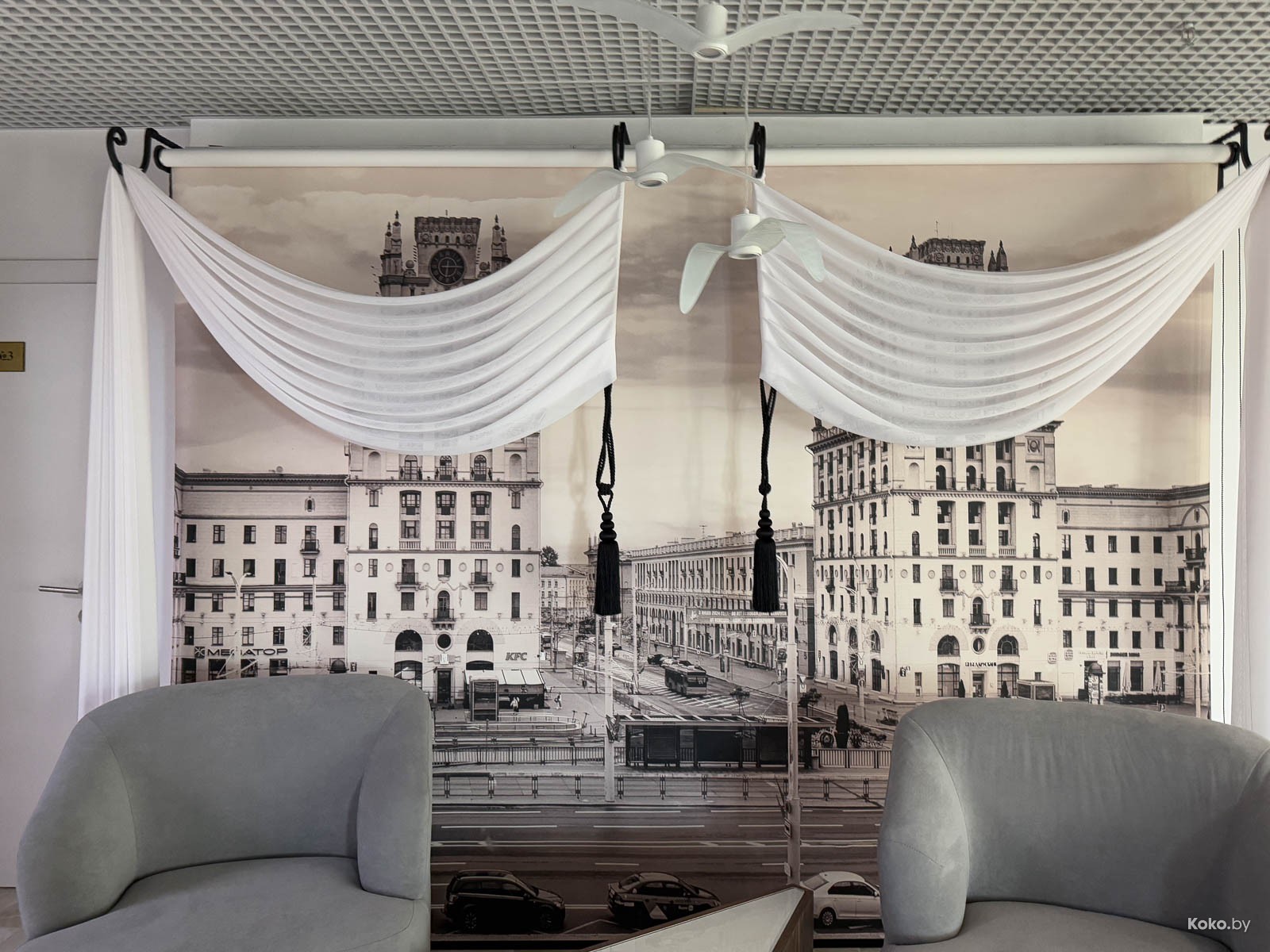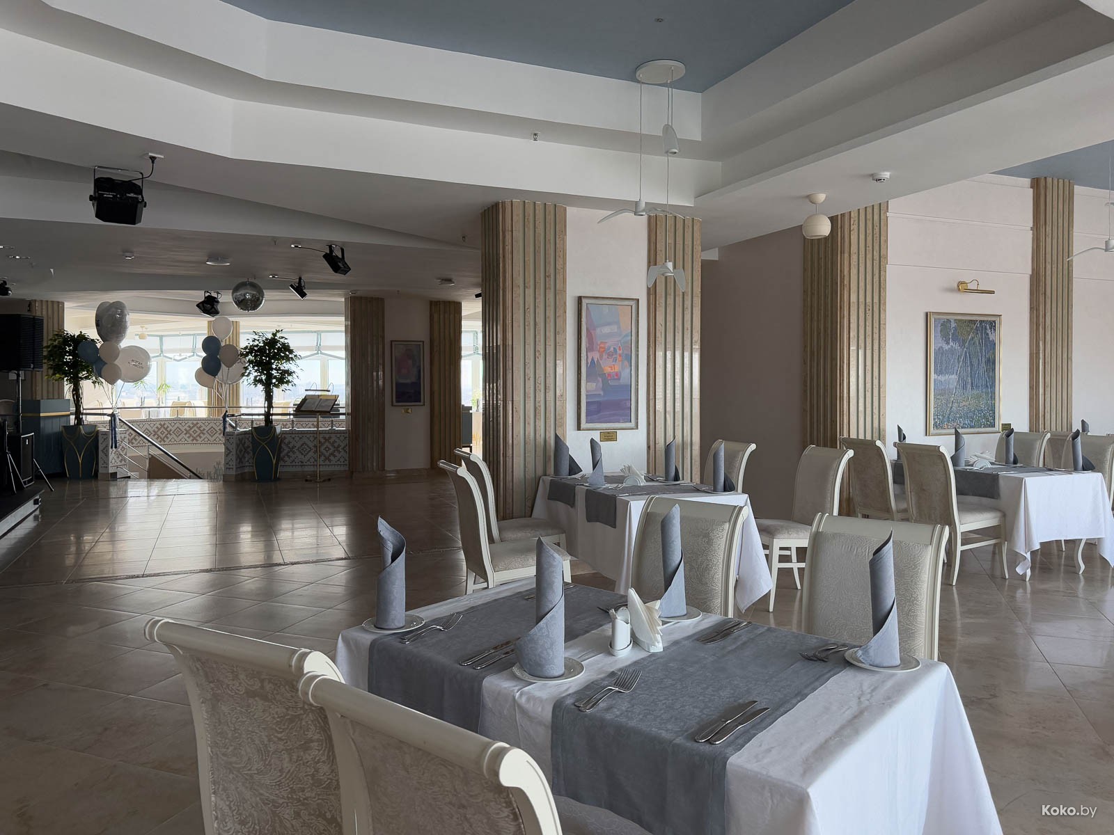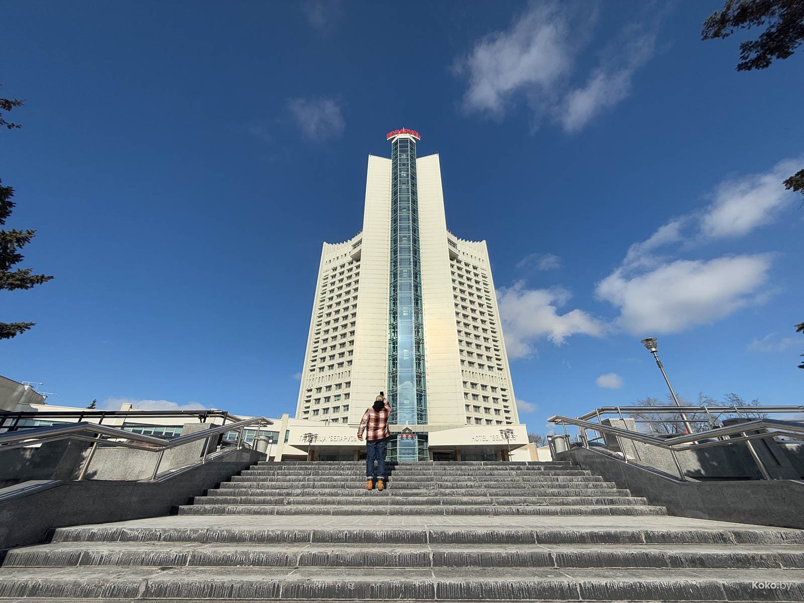 Немногие осведомлены о ресторане в гостинице «Беларусь», который недавно обновили. Кроме него такой панорамой может похвастаться лишь «Зь Вью» на 28 этаже центра бизнеса «Роял Плаза». С четвёртой попытки удалось добраться до обедов, т.к. каждое наше намерение его затестить пресекалось спец. обслуживанием, заведение пользуется лютым спросом под разные торжественные мероприятия. Пришло время заценить новый ремонт и разбить копилку об обеды.