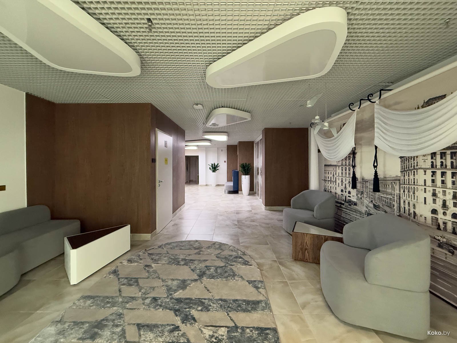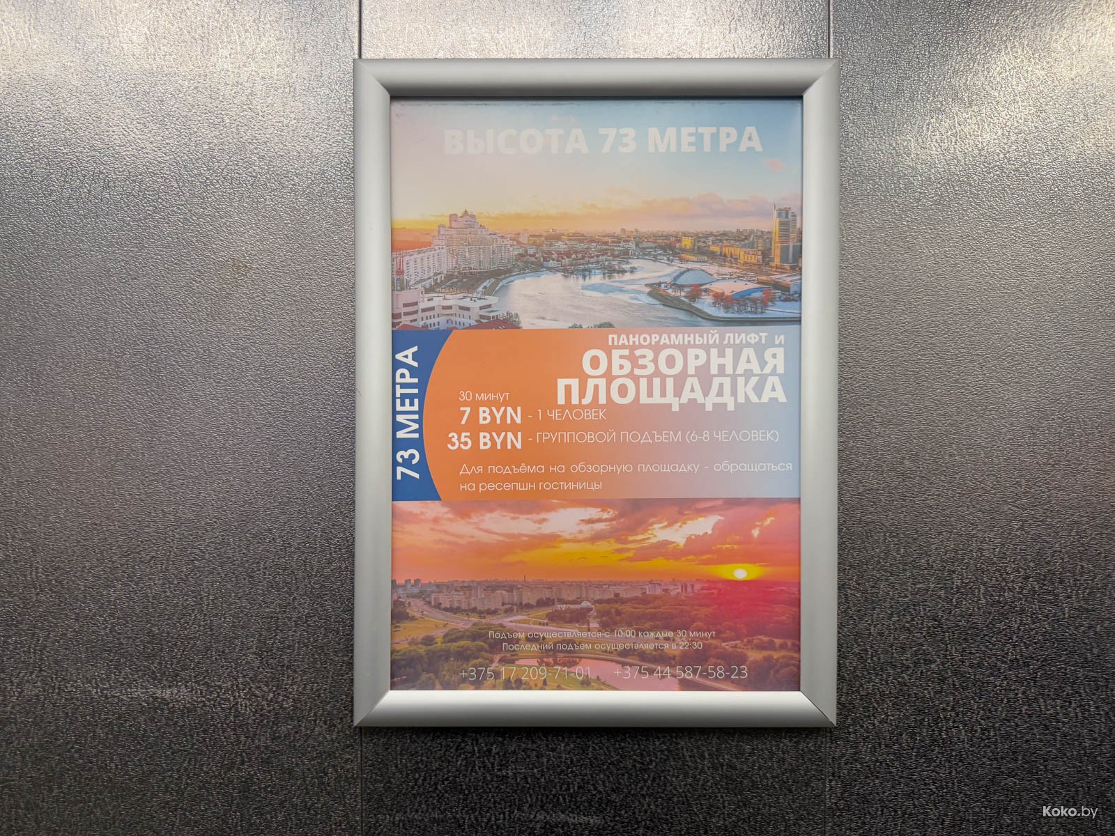 Заходим в лифт, который несёт нас на 21 этаж, после нас ждал подъём по ступенькам прямо в ресторан. Этажом выше за 7р можно полюбоваться Минском со смотровой площадки, рекомендую не полениться.