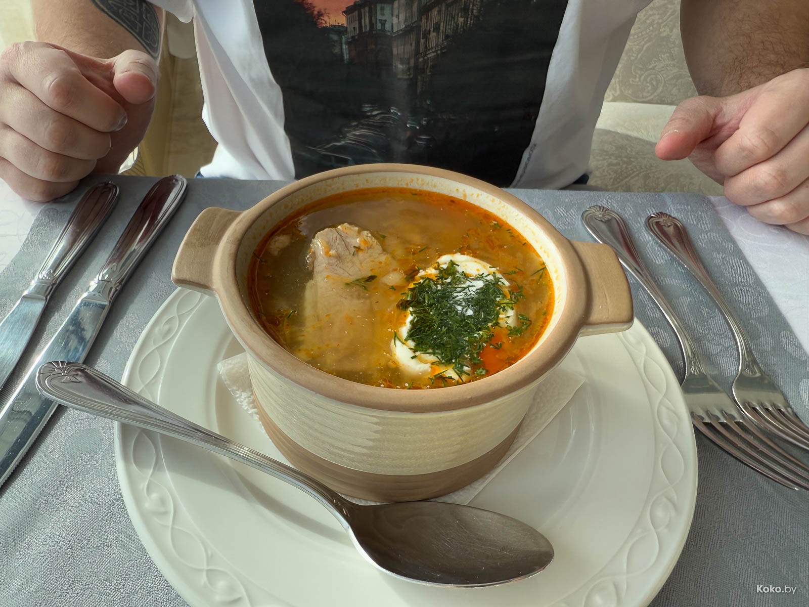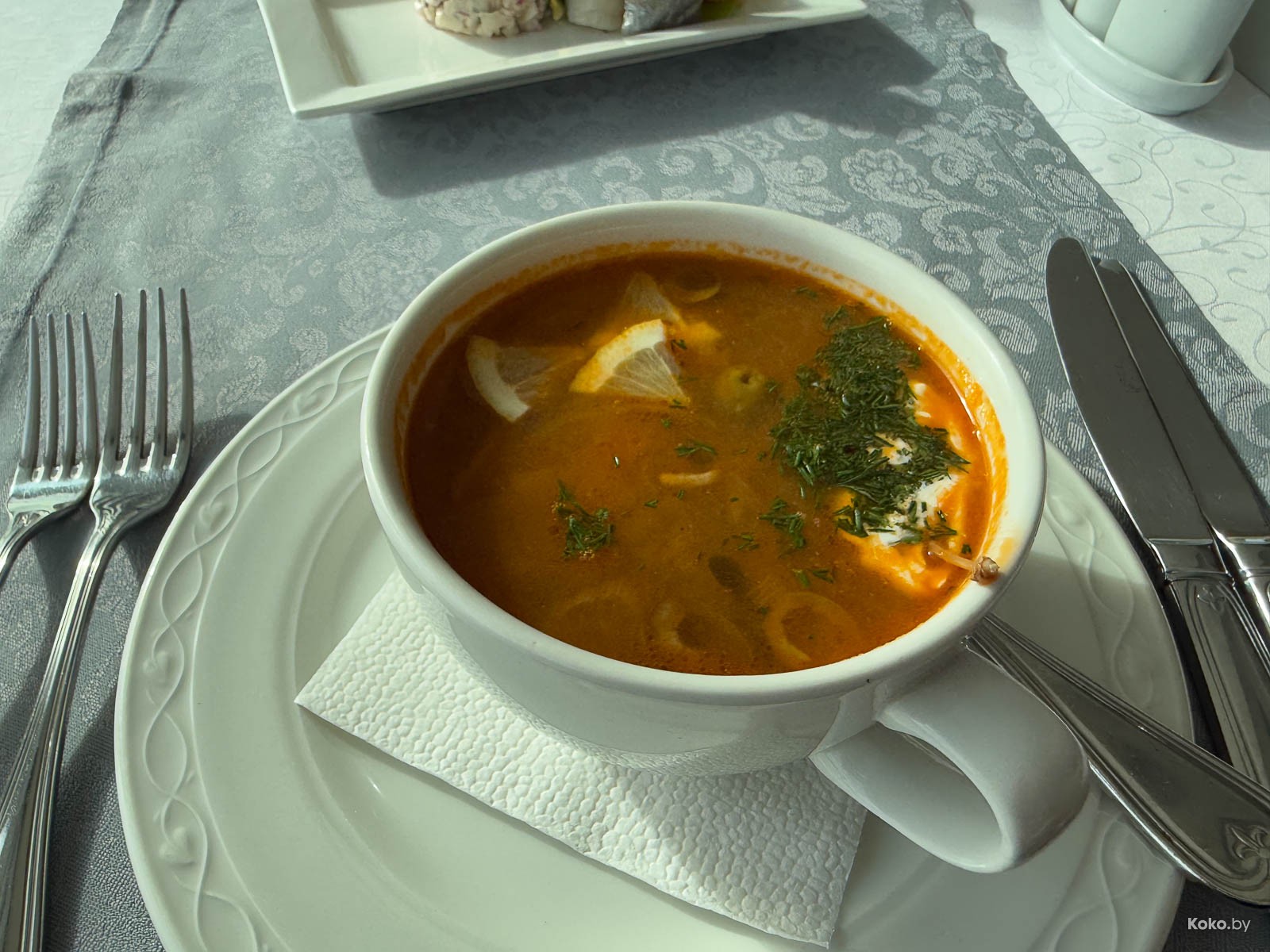 1. В большой кружке - колбасная солянка с языком за 14р с умеренной кислотностью, порция супа, как и обязана быть везде - много и вкусно.