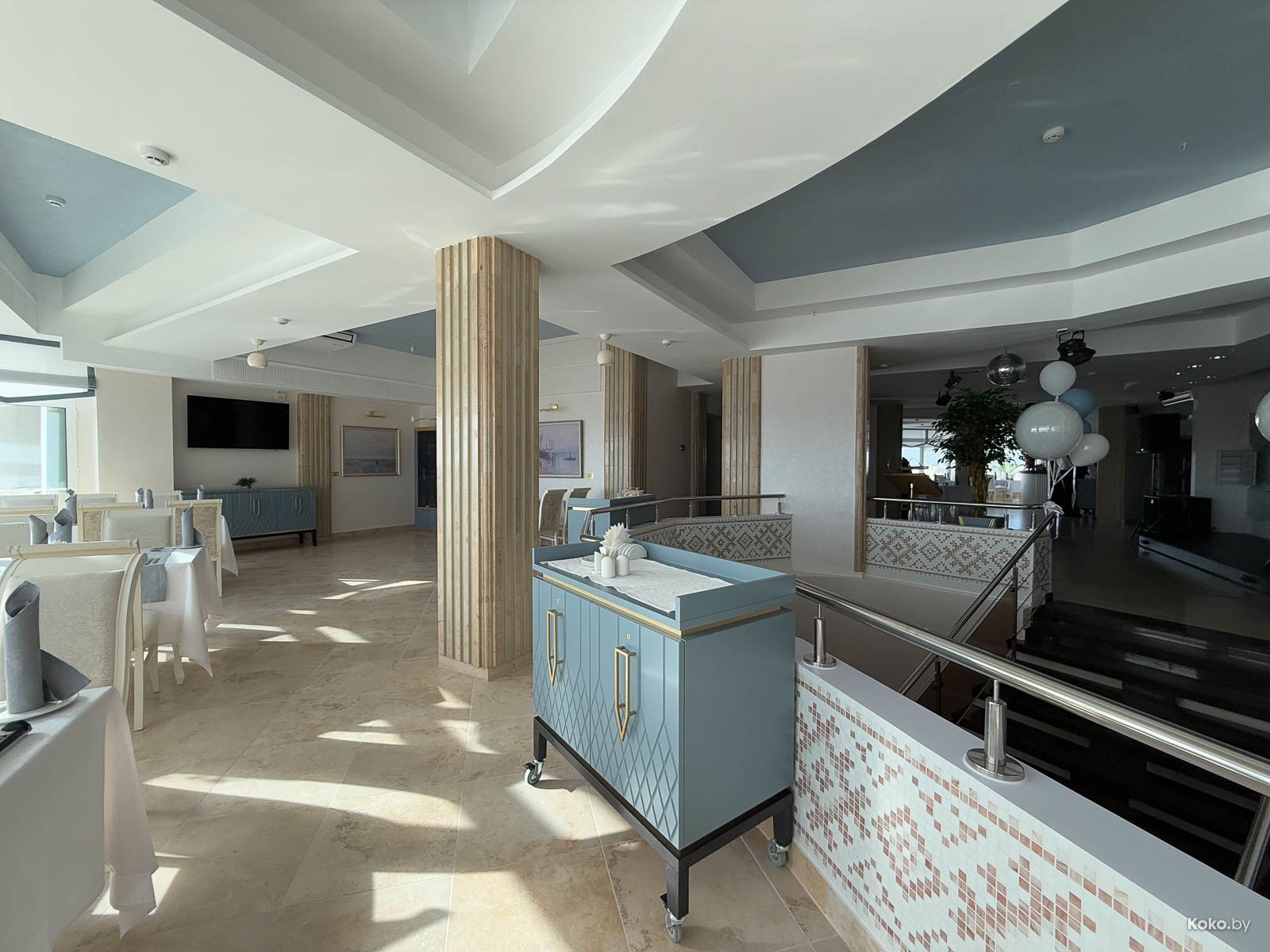 Ресторан глобально не поменялся, чутка подкрасили, повесили римские шторы, занесли комоды, лампы стилизовали в форме полёта чаек. Если долго смотреть на панорамный вид, можно совсем забыть об обеде.