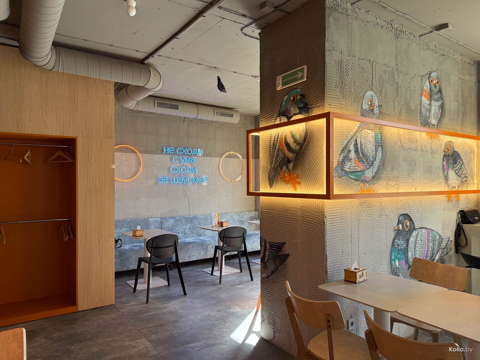 Сегодня мы на Авакяна, 19 в кафе шаурмичных дел «Лаваш», где в интерьере столько голубей, надеюсь только не на вертеле.