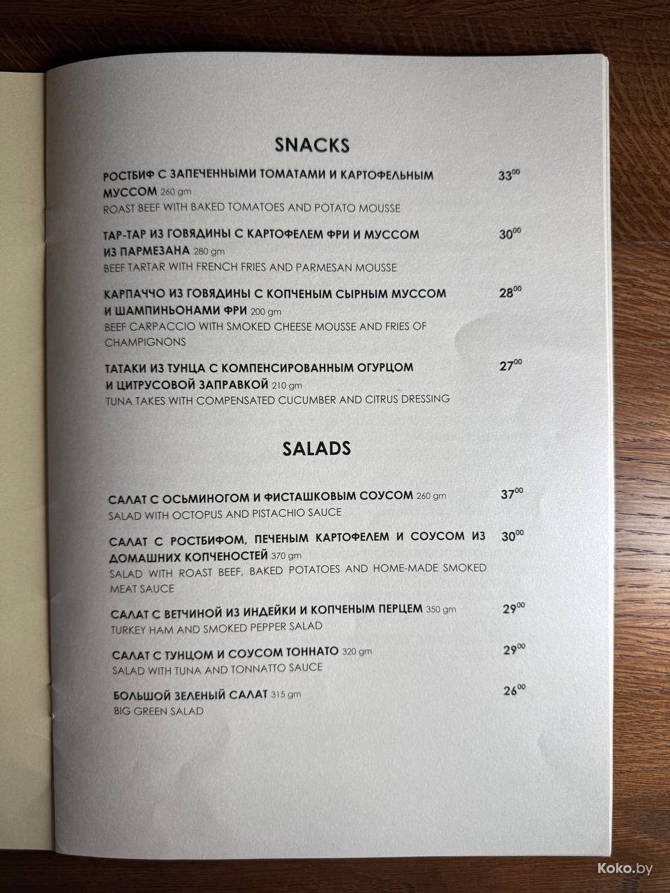 В тех временах страдать не приходилось, но здешнее меню попсовое: тартар, салат, стейк, бургер по ценам как и везде. В новом супервинном «Нола» над рецептами закусок сильно заморочились.