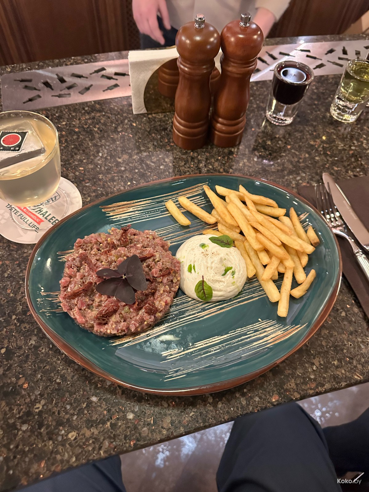 1. Порубленная говядина с сырным муссом и фри за 30р на отлично.