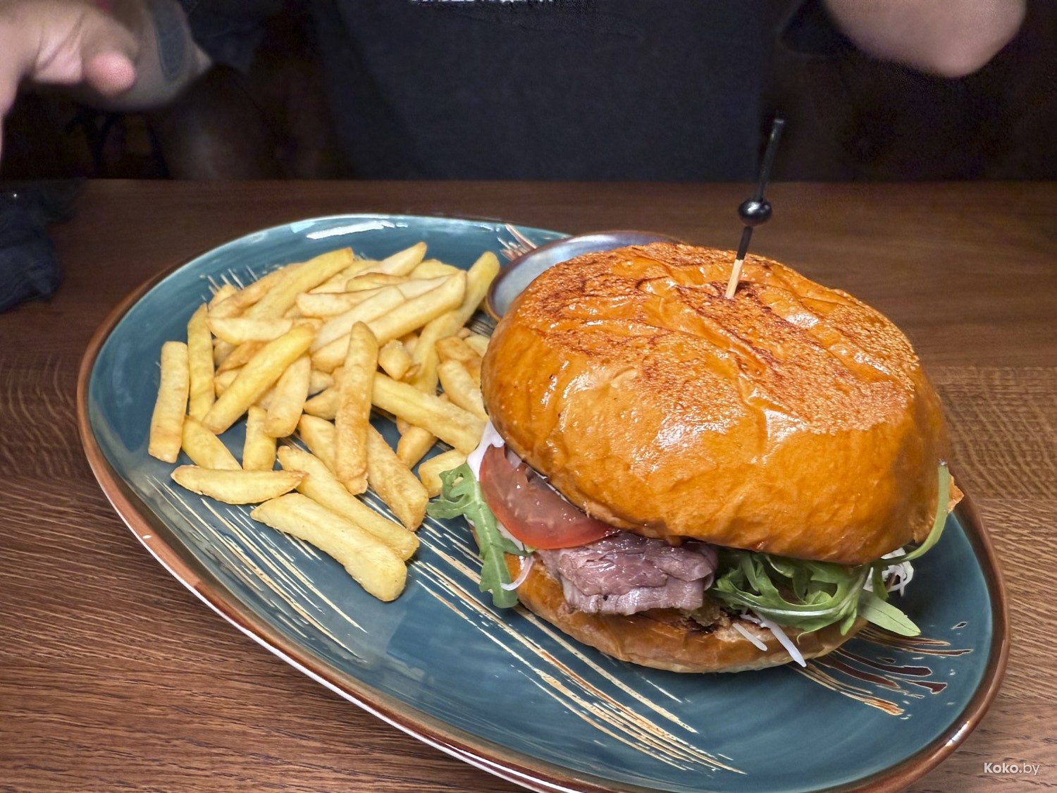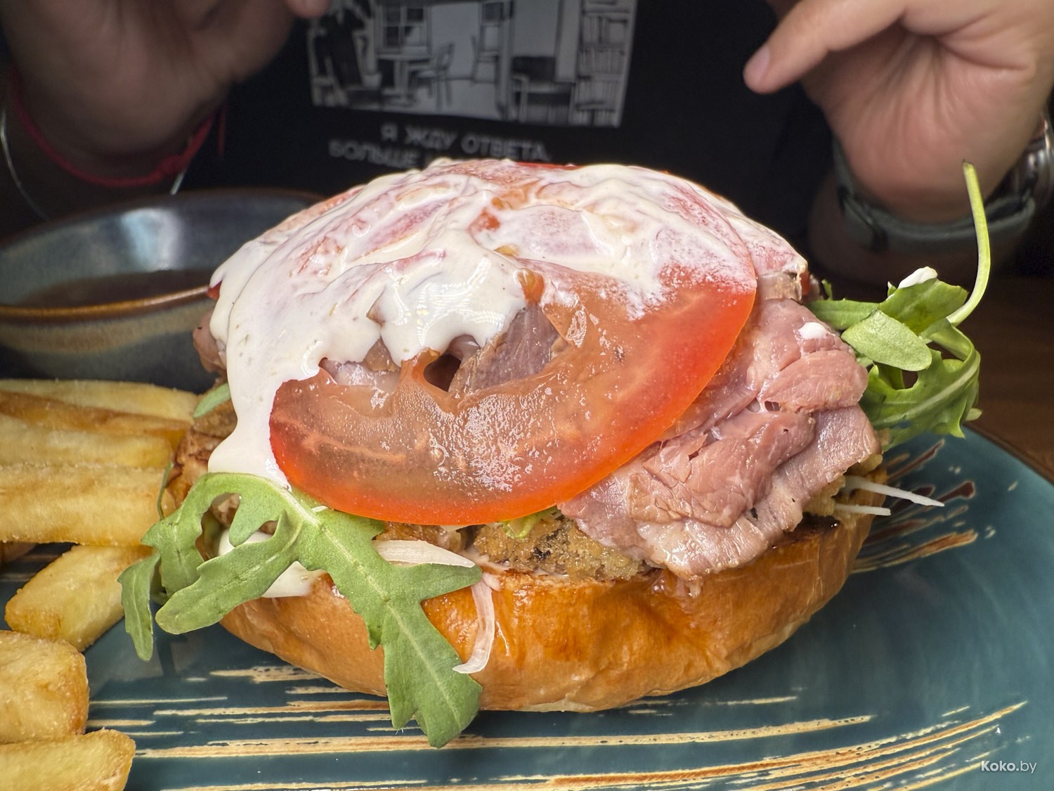 1. Бургер с ростбифом за 31р в комплекте с фри и китайским соусом.