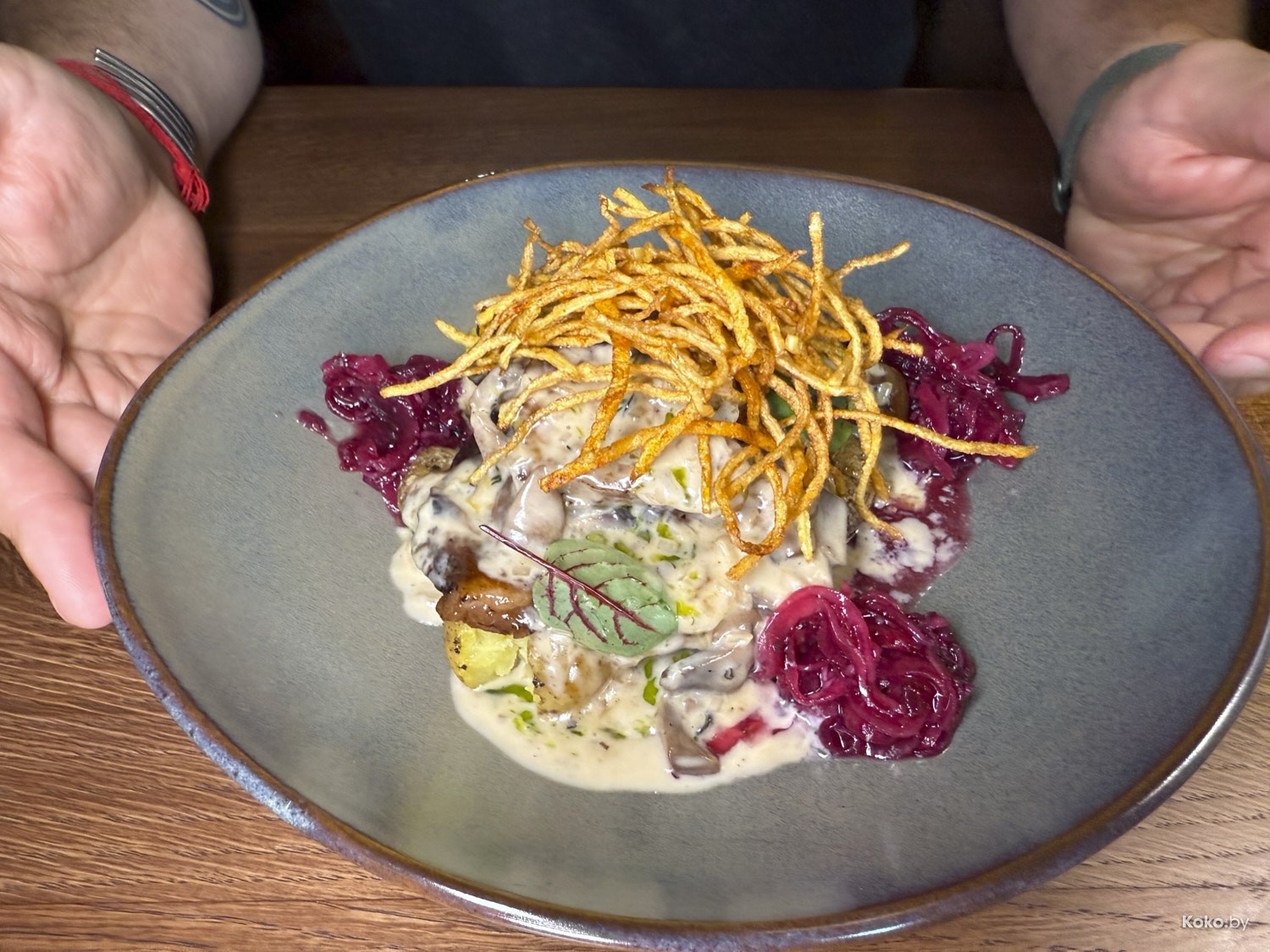 2. Говяжий брискет с молодой картошкой под грибным соусом за 46р.