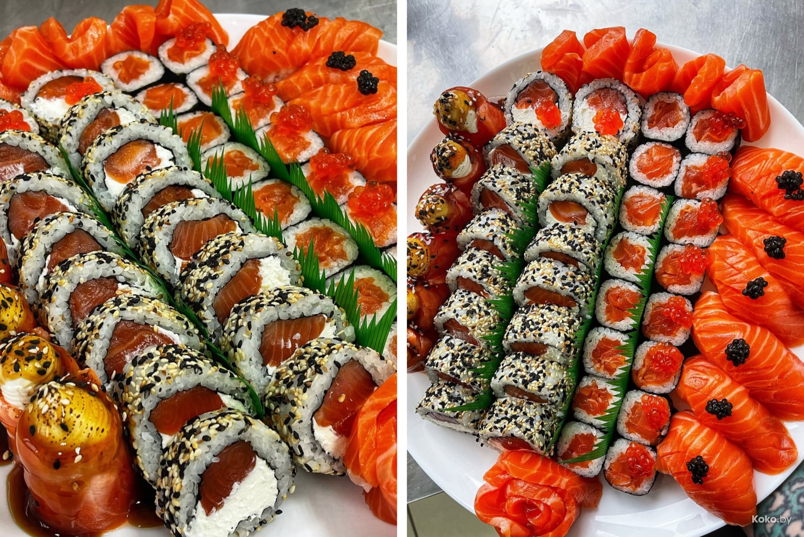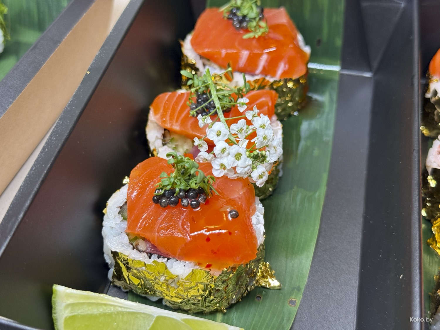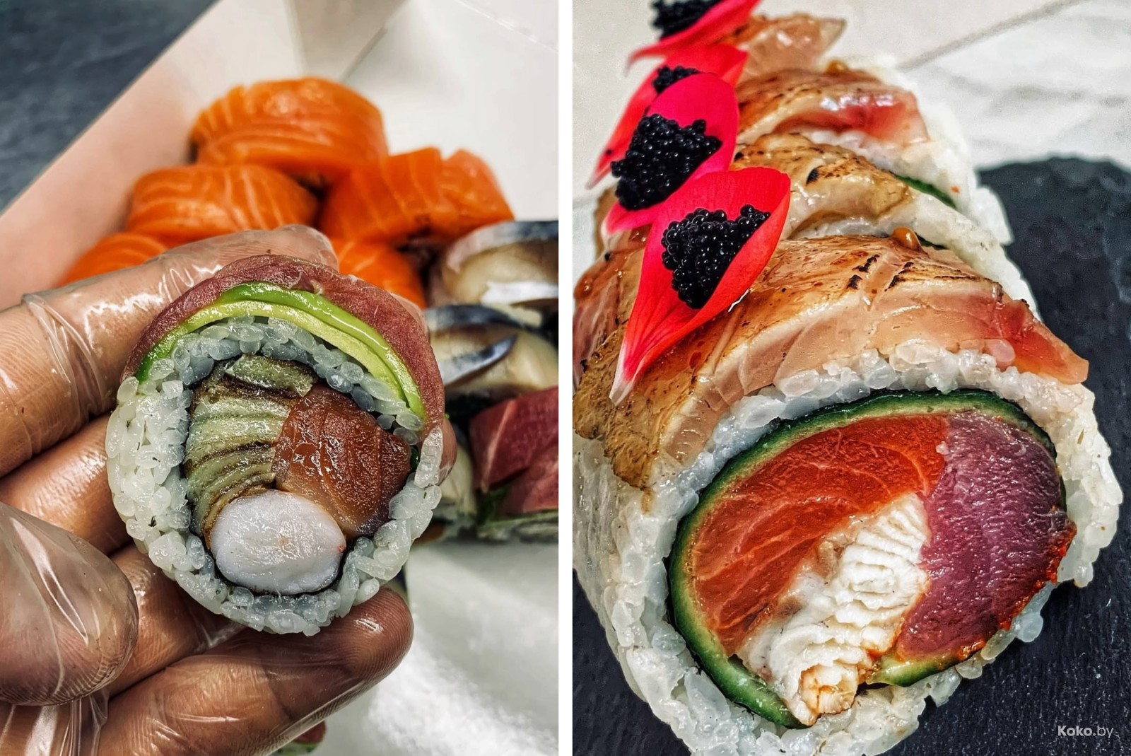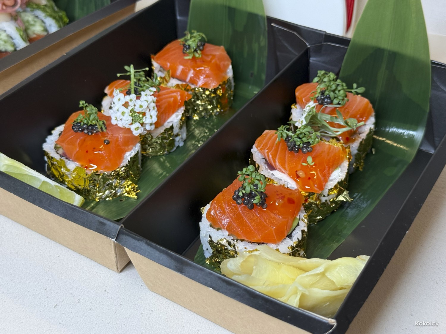 1. Роллы по-самурайски скручены в тонкий рис, минимум кремчиза, много свежей рыбы, как следствие, такая дикая для Гродно цена.