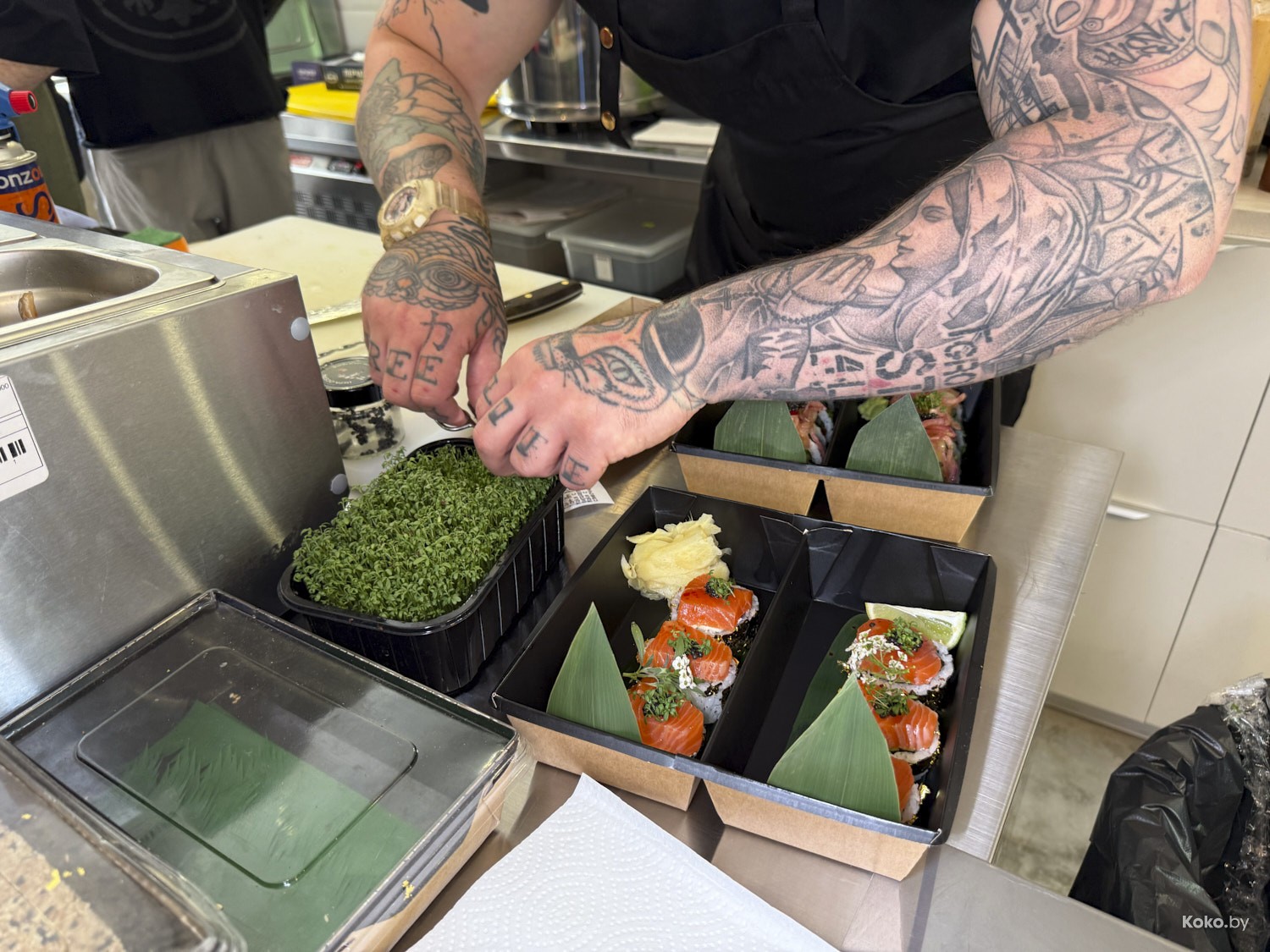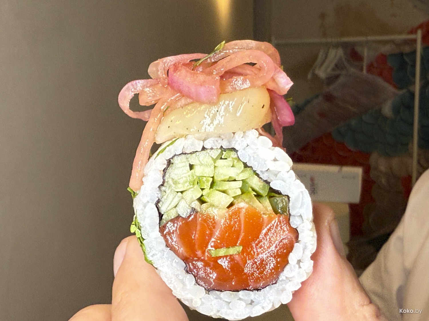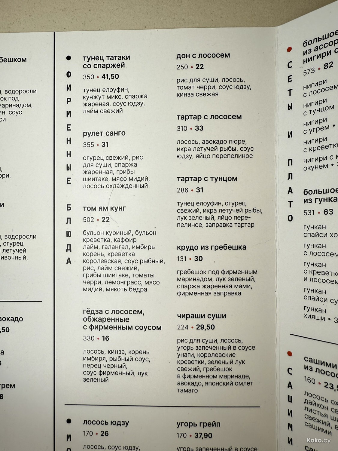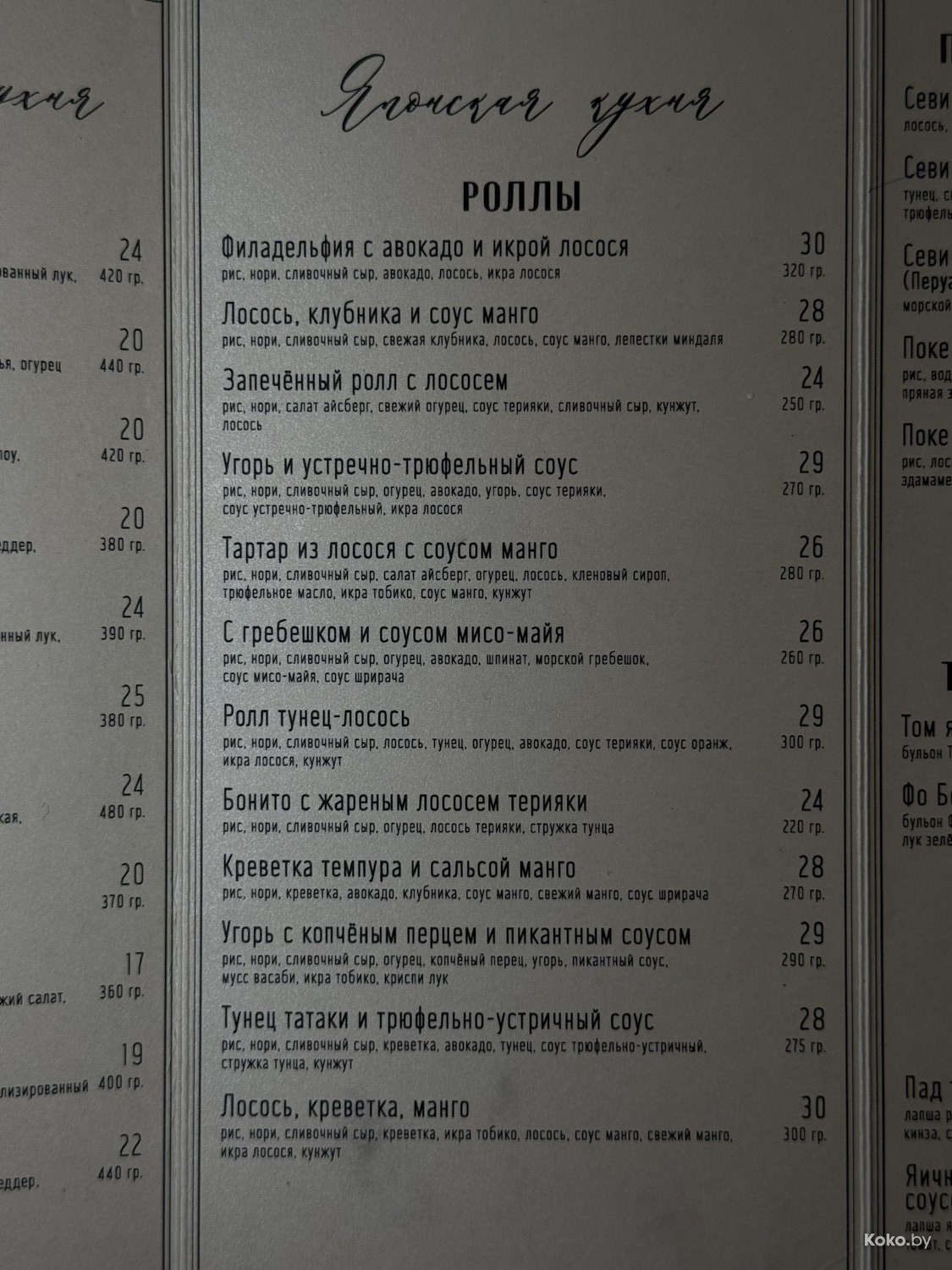 1. Роллы по-самурайски скручены в тонкий рис, минимум кремчиза, много свежей рыбы, как следствие, такая дикая для Гродно цена.