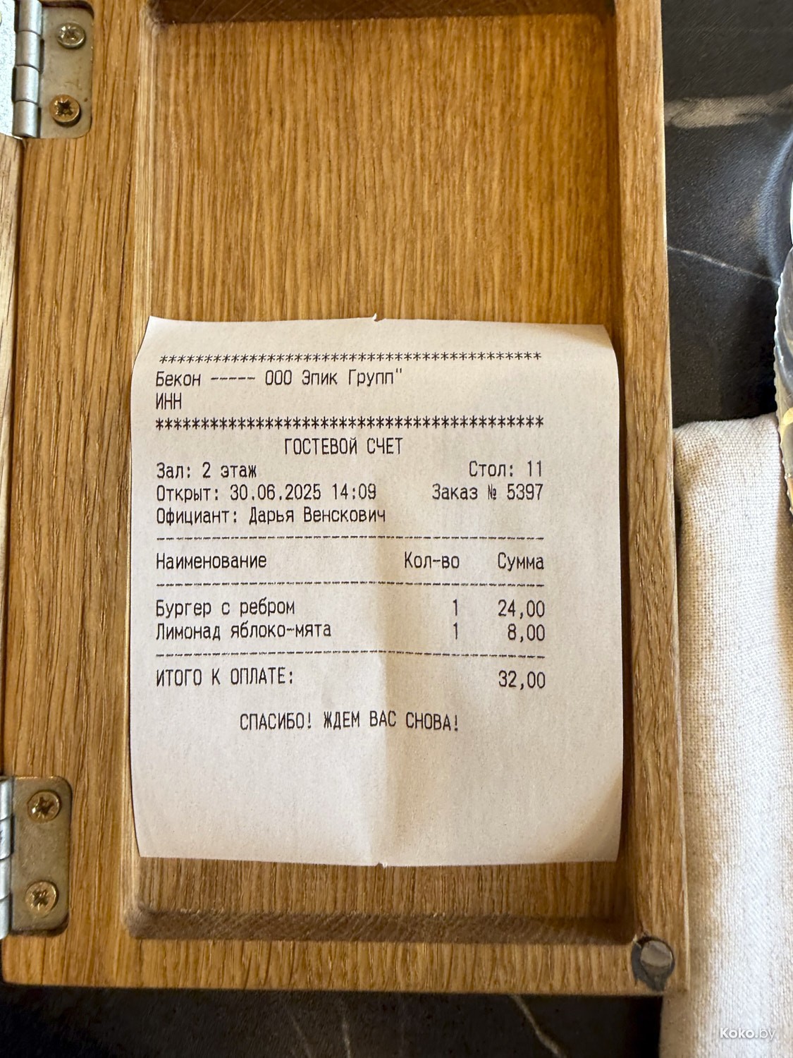 Название не соответствует концепции, обычное меню из бургеров и Паназии, где бекону не отведено главенствующей роли.