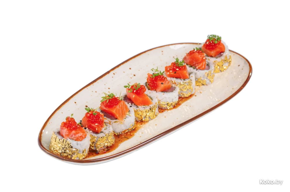 Вижу, шеф решил похвастаться икрой, как говорится, мой сектор - приз. Пошлый ролл с лососем и тунцом в сусальном золоте - огонь, как вкусно!