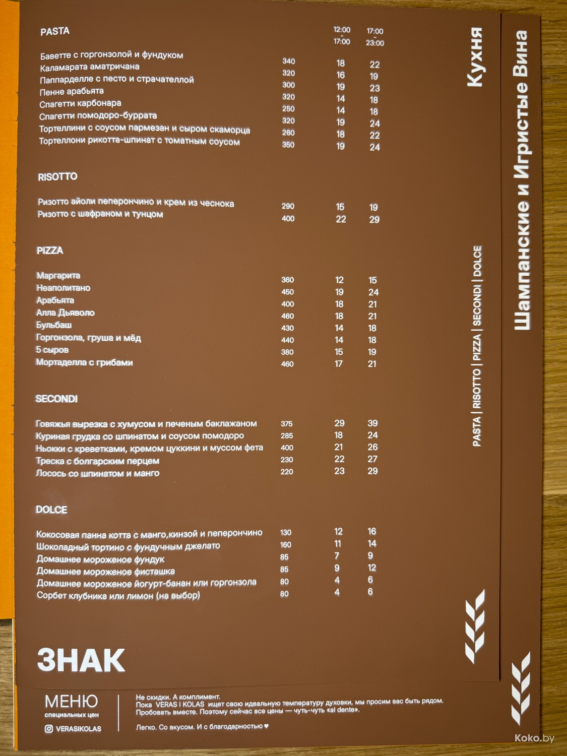 В очередном проекте от владельцев туси-джуси «Гости» и вкуснейшего, если знать, что брать, «Малевич» на одной здоровенной, как еврошестёрка в «Минск Мире» кухне экспериментируют с продуктами два известных шефа. Как в той песне у бабуси: один наш Илья, второй - Марко Якетта, два весёлых шефа. Жизнь закипела в бывшем бистро «Прайм Тайм» под вывеской «Верас и Колас», спорная локация за горой, есть летка, кальяны, чуть позже меблируют випки.