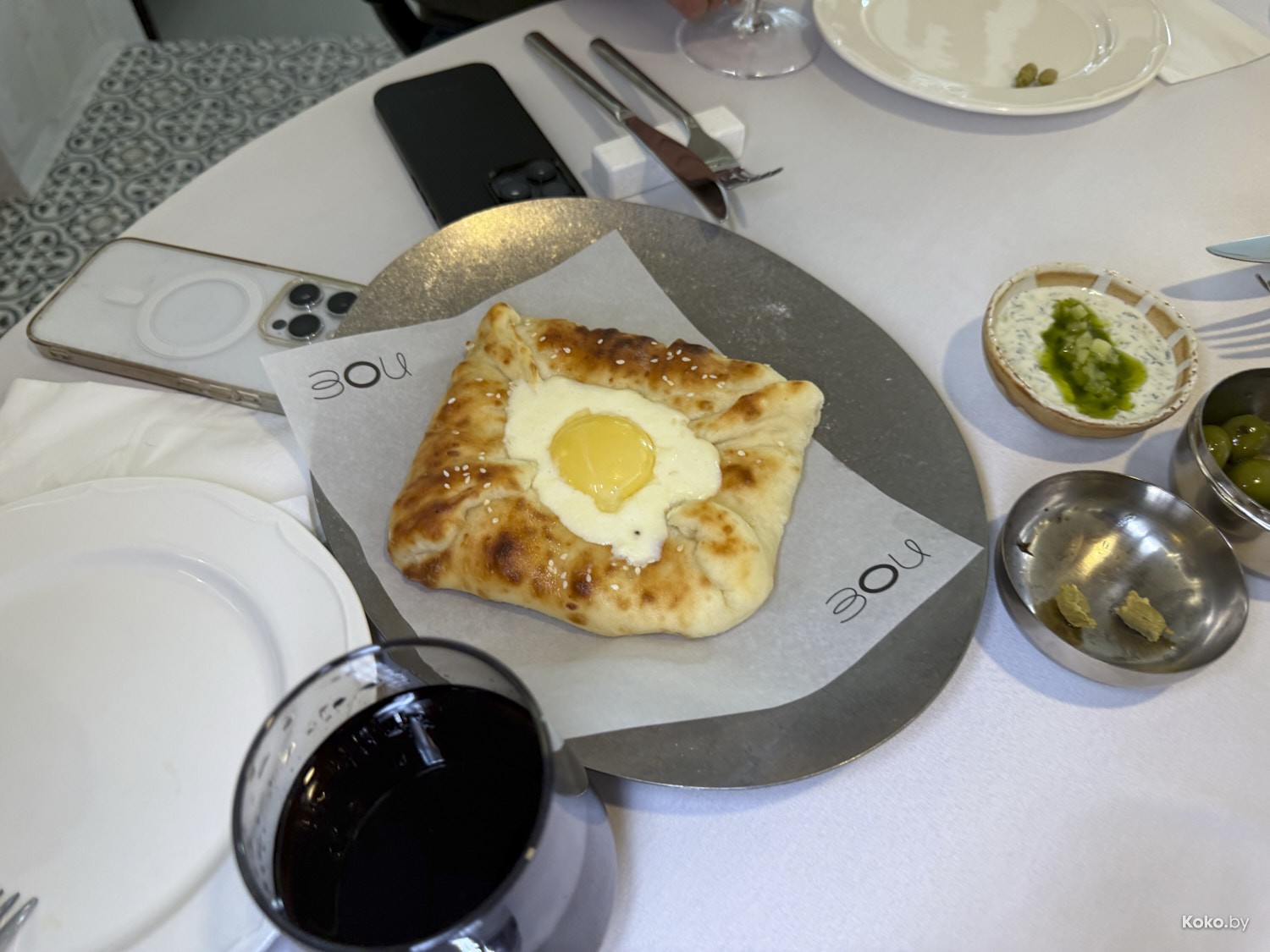1. Намазки и лепёшки из печи хороши в любых комбинациях, начните с дзадзики, оливок и хачапури по-гречески с яйцом и сыром.