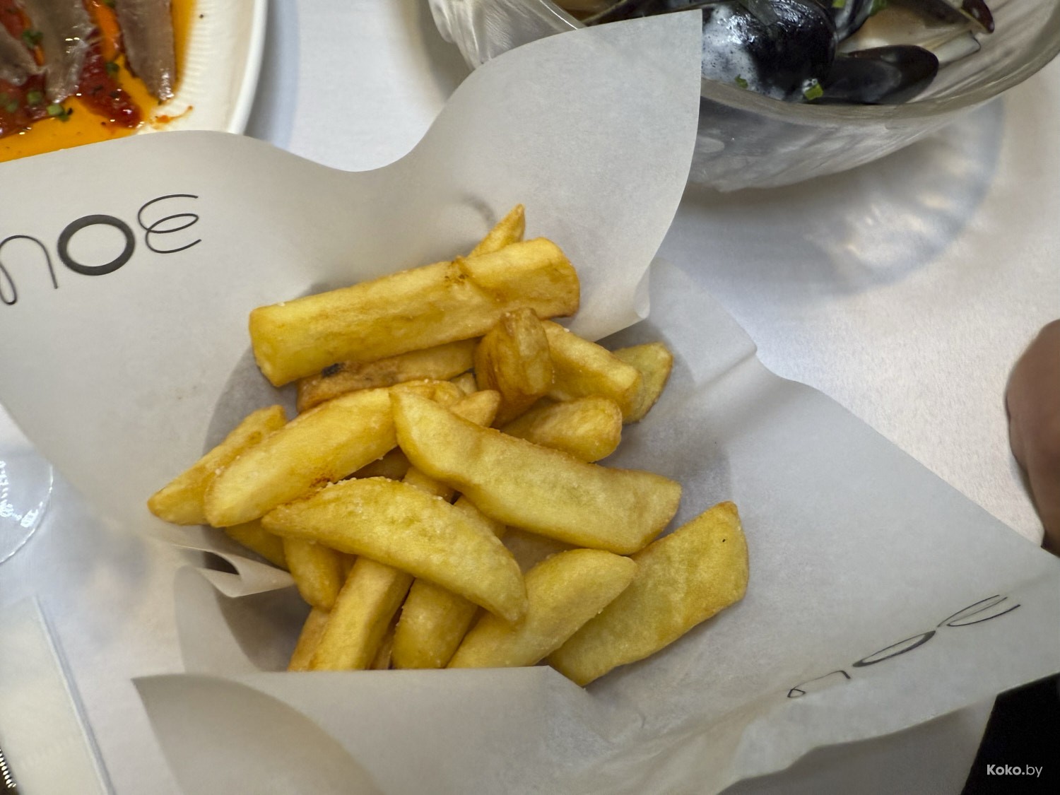 5. Голубые мидии в сливочном соусе с тархуном и картошкой фри за 24р. Честная порция, мидии крупные, а соус к мидиям вкуснее с Дорблю.