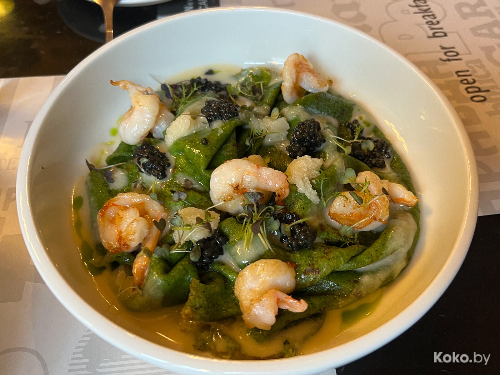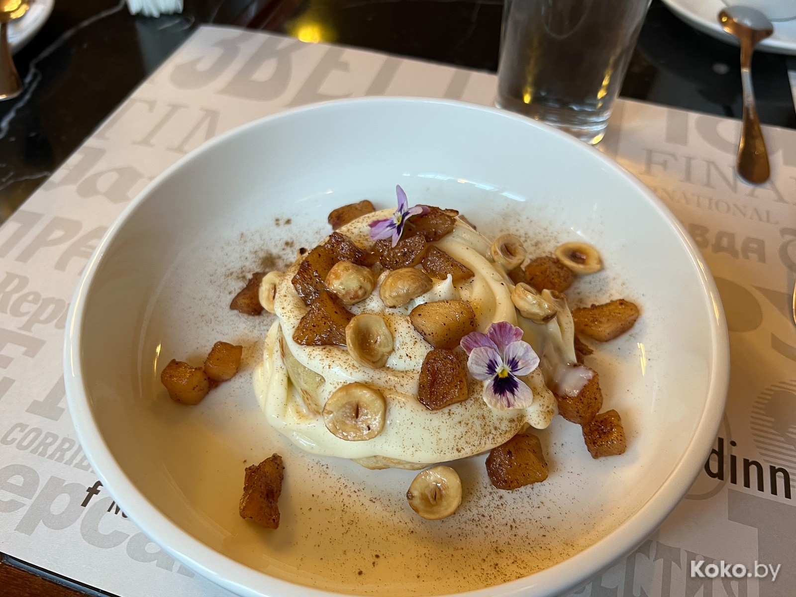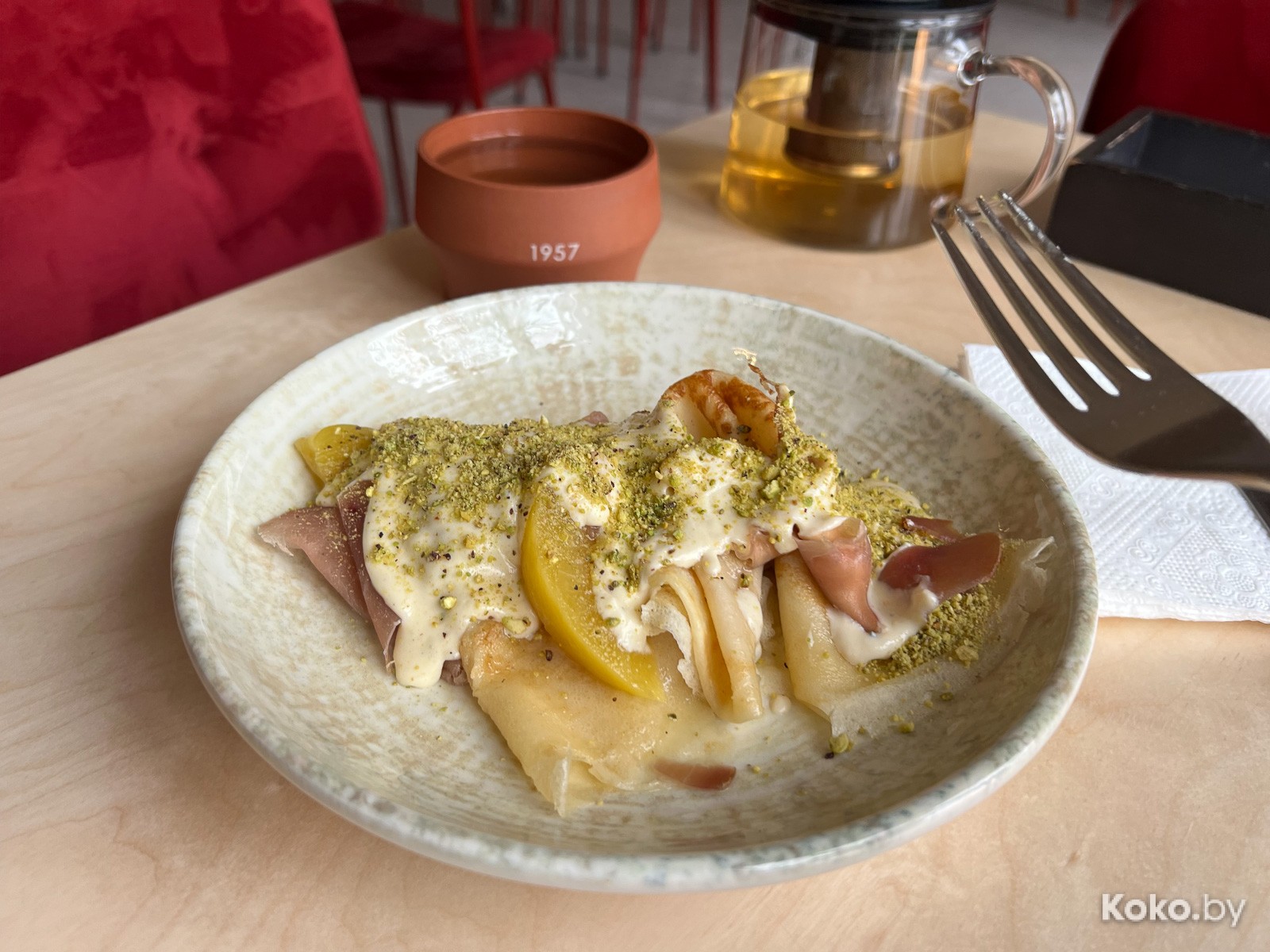 Тест: блинчики с заморским прошутто, персиком и сырным соусом за 15,50byn просто бомбические, но порция как ребёнку до шести лет.