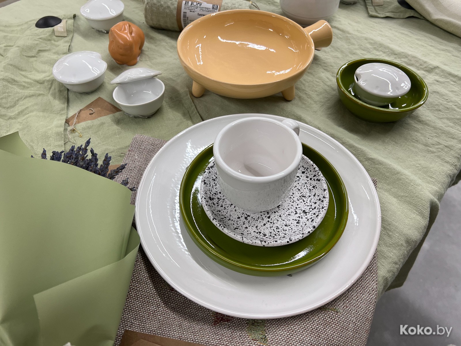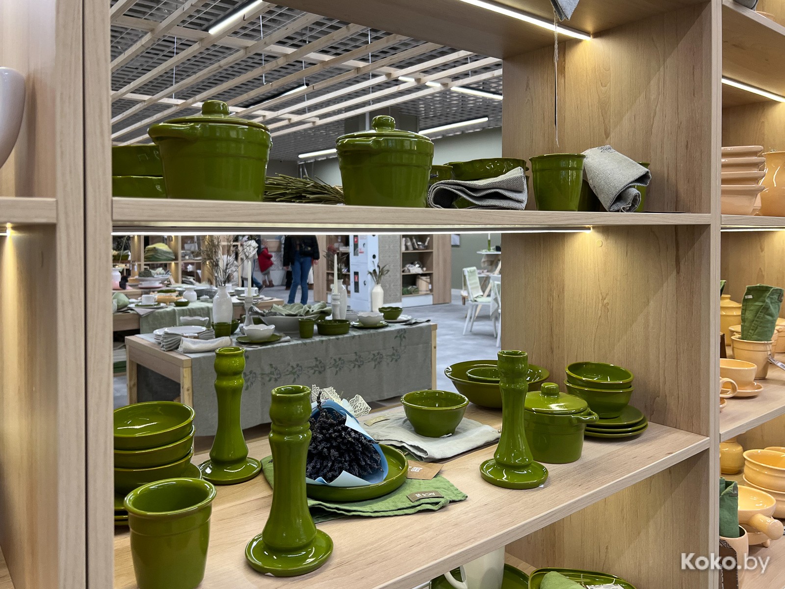 Поклон дизайнерам, что не заколхозили интерьер магазина, выглядит экологично, чинно, комфортно, на «Зара Хоум» похоже. Совпадение? На полках есть всё, кроме мебели и Заровского интерьерного пня за 120$. Наблюдаю постельное бельё, текстиль домашний, посуду, предметы декора, аромасвечи, фарфор и керамику. А ещё чаи из Беловежской пущи. Бьюсь об заклад, превратится в сеть, если выстрелит.