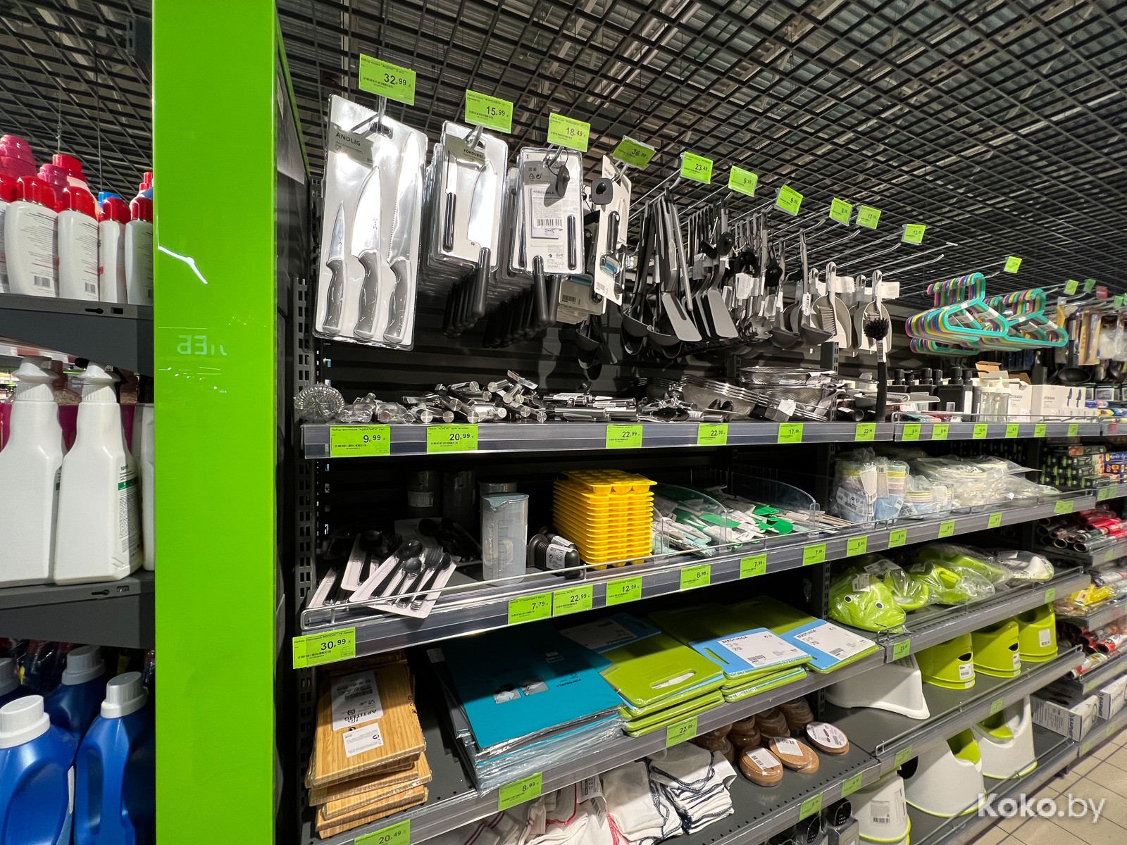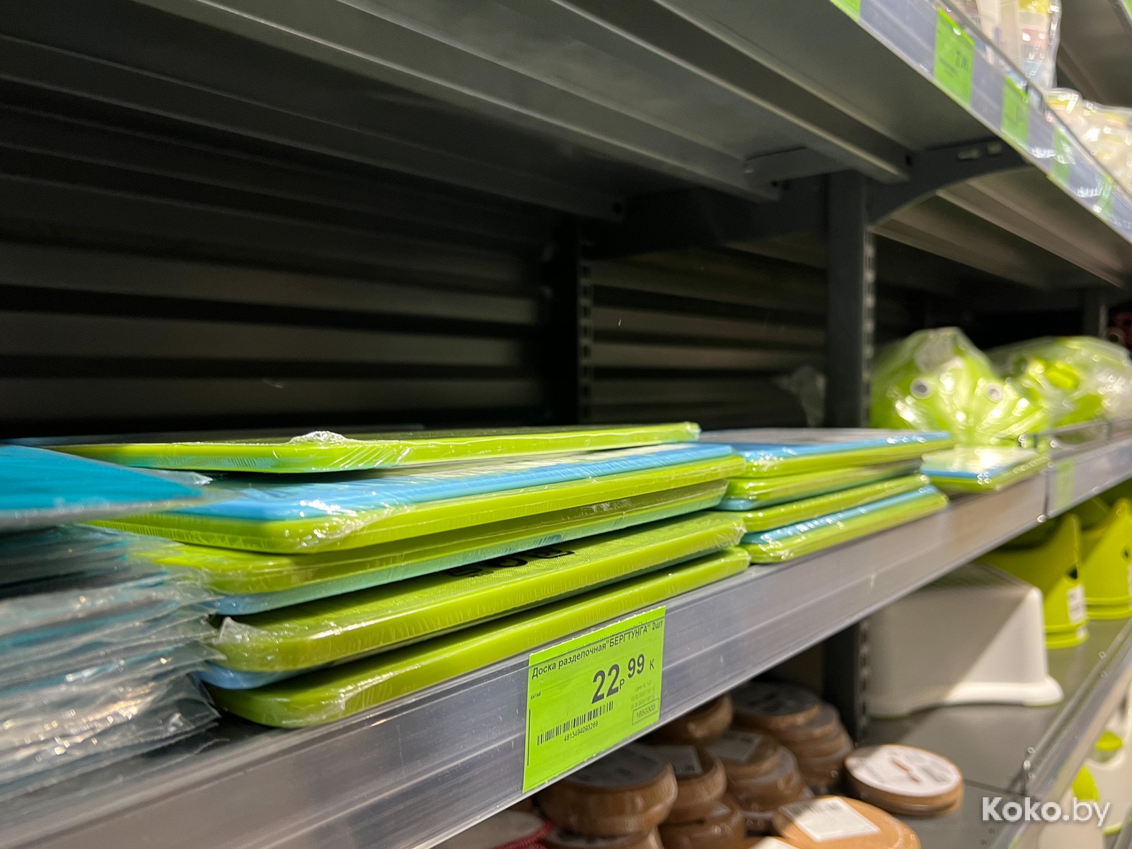 Ищите полку среди всё для кухни. Тут у нас деревянные разделочные доски приятного качества по 20,49byn, кухонные ножи, ложки, ночные горшки и поварёшки. Пока только мелкое бытовое без мебели.