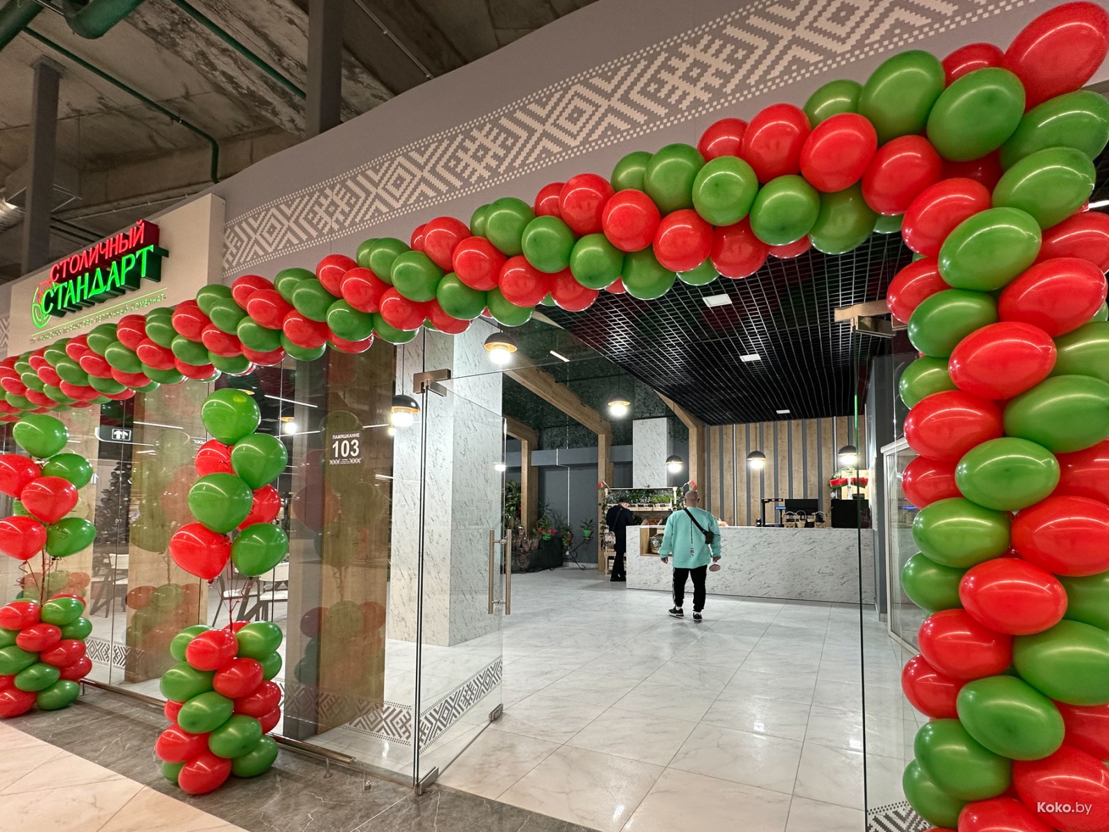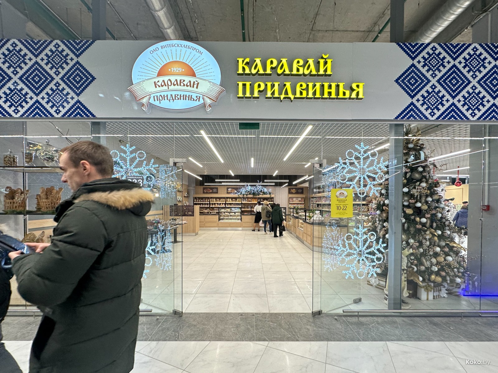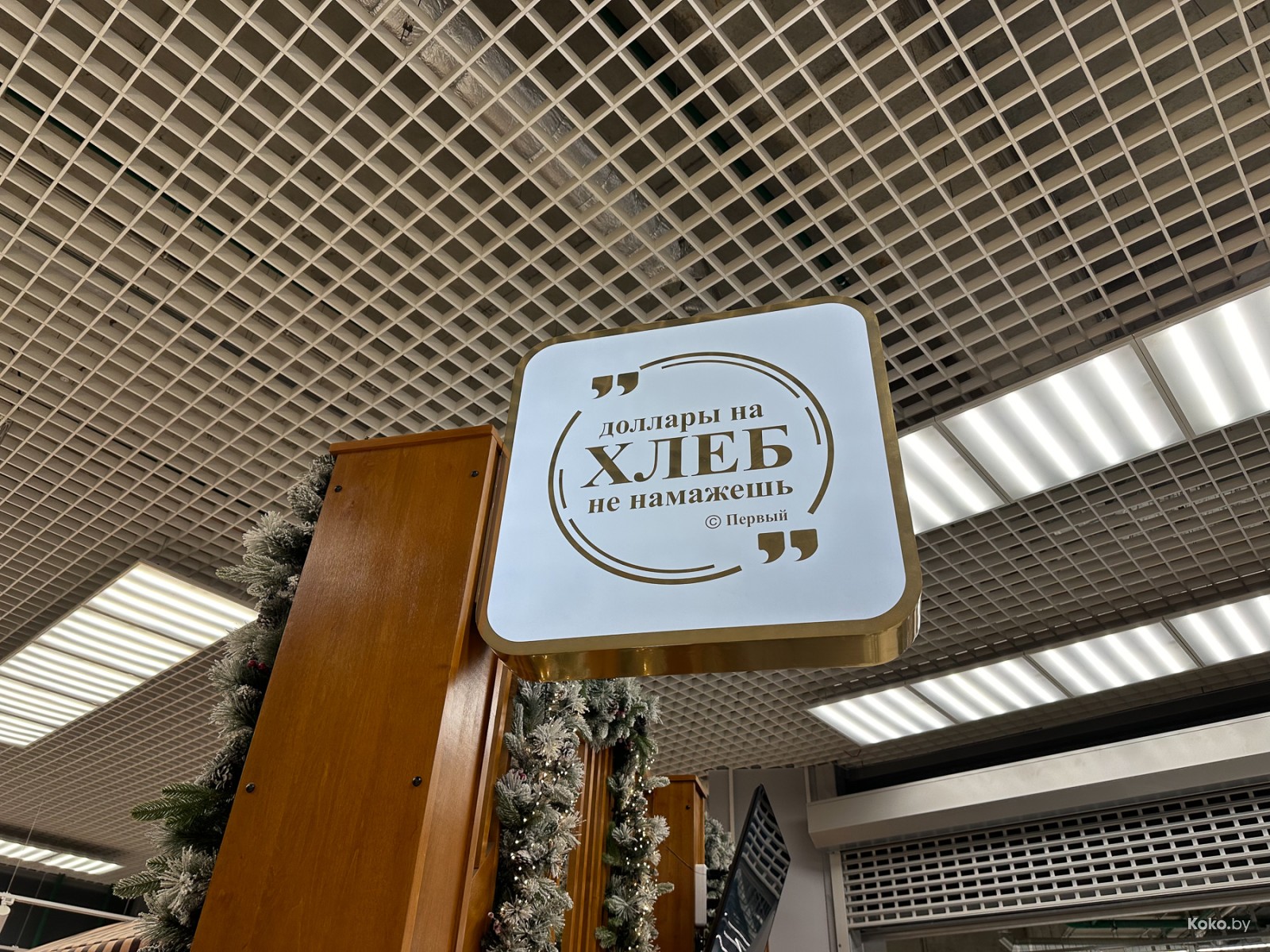 Показываю, что внутри нового торгового центра «Першы гандлёвы дом» только с белорусской продукцией