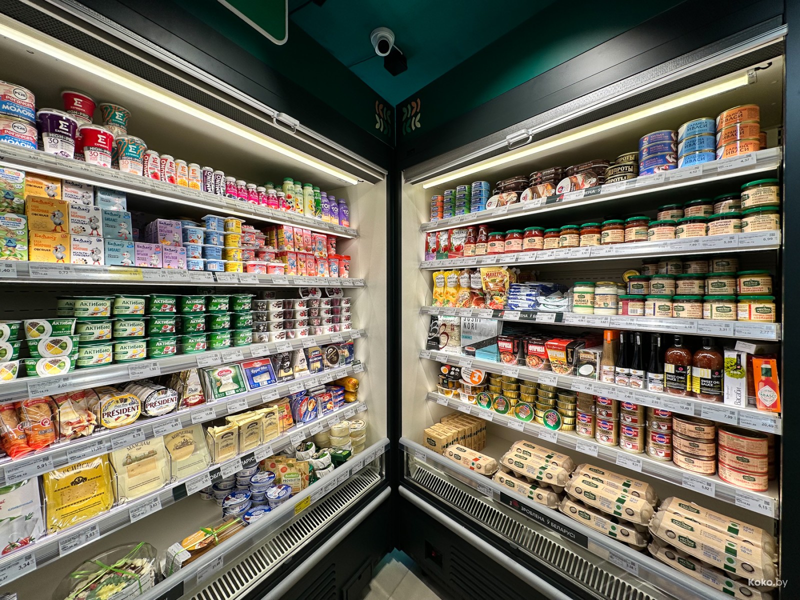 Что ж, таки небольшой магазин, где есть всё, даже огненная вода. Ассортимент типичного мини-магазина с современными потребностями в приятном дизайне, на кассе можно побаловаться хот-догом за 3,99р.