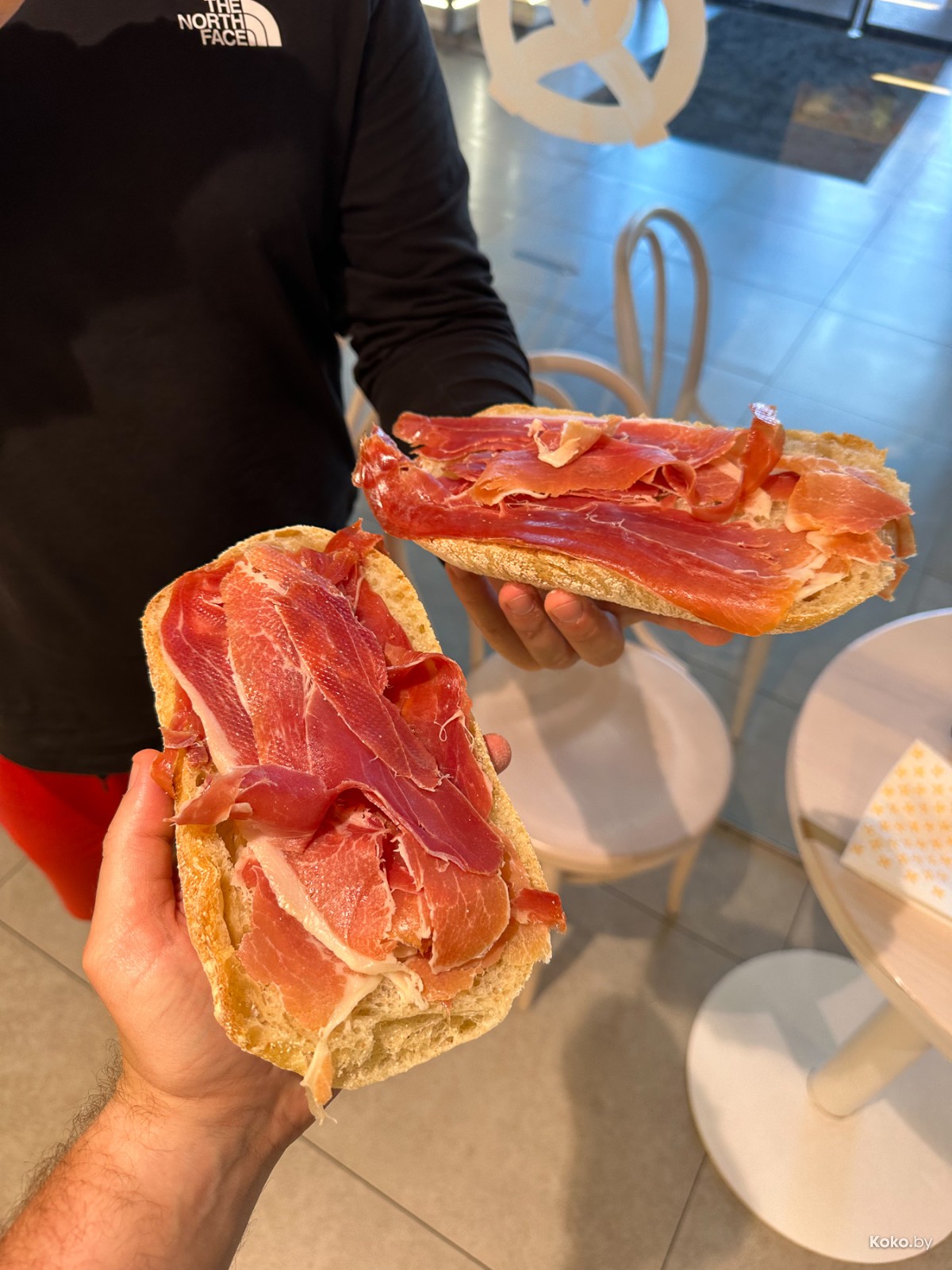 На рыночке «Валерьяново» собрали из местного хамона 300г и чиабатты с «Булочек» самый дорогой бутерброд за 36р каждый. Зачем так много хамона навалили? Да чтобы в жару в машине не погиб. Восхитительно!
