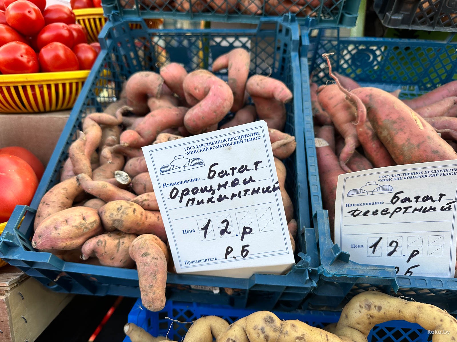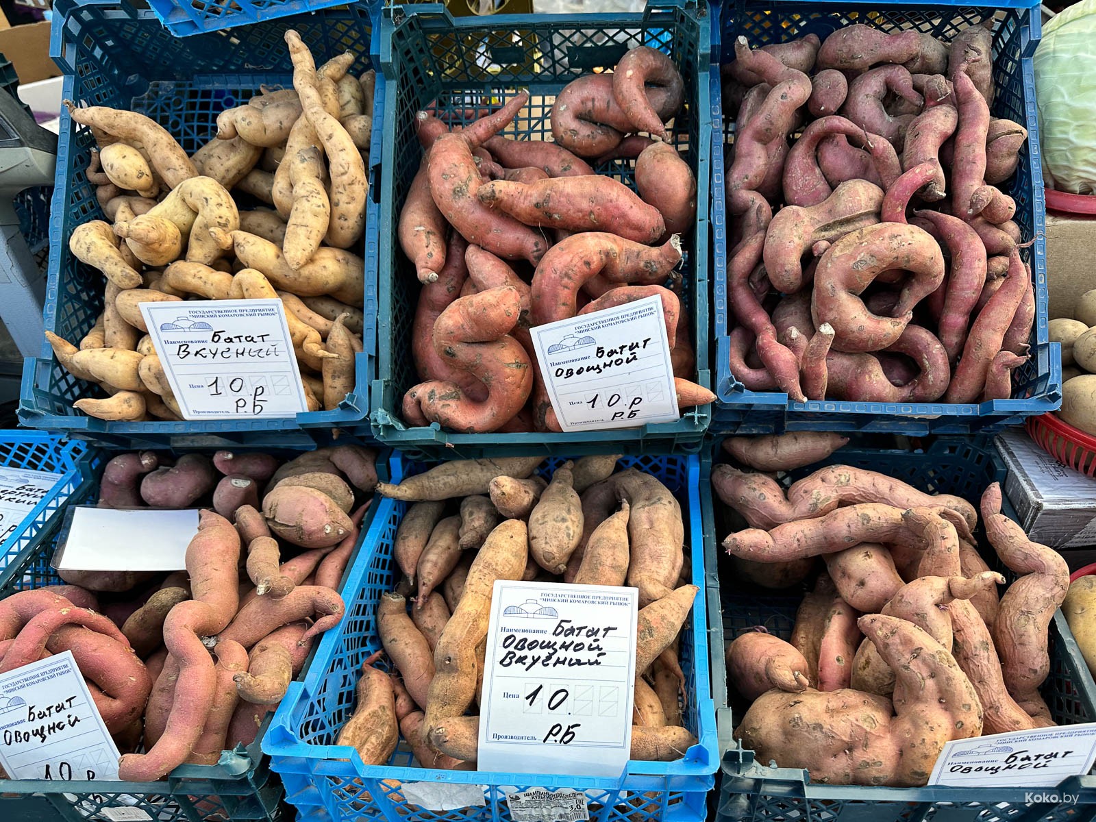 Что сейчас продают на «Комаровском» рынке: десять видов белорусского батата, китайский виноград и тыква