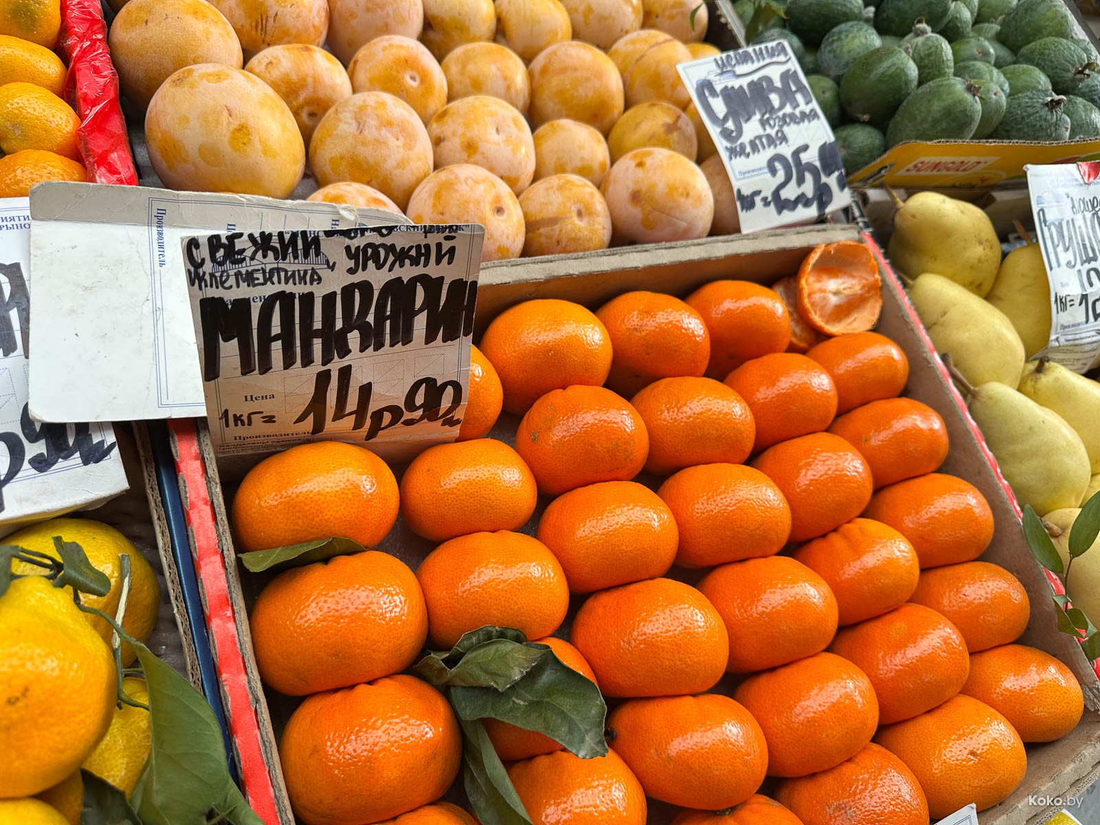 Открывает сезон хурма Каки, пока что дорого, импортные мандарины от 11,90р за кг и местная медовая суповая тыковка по 3р за килограмм.