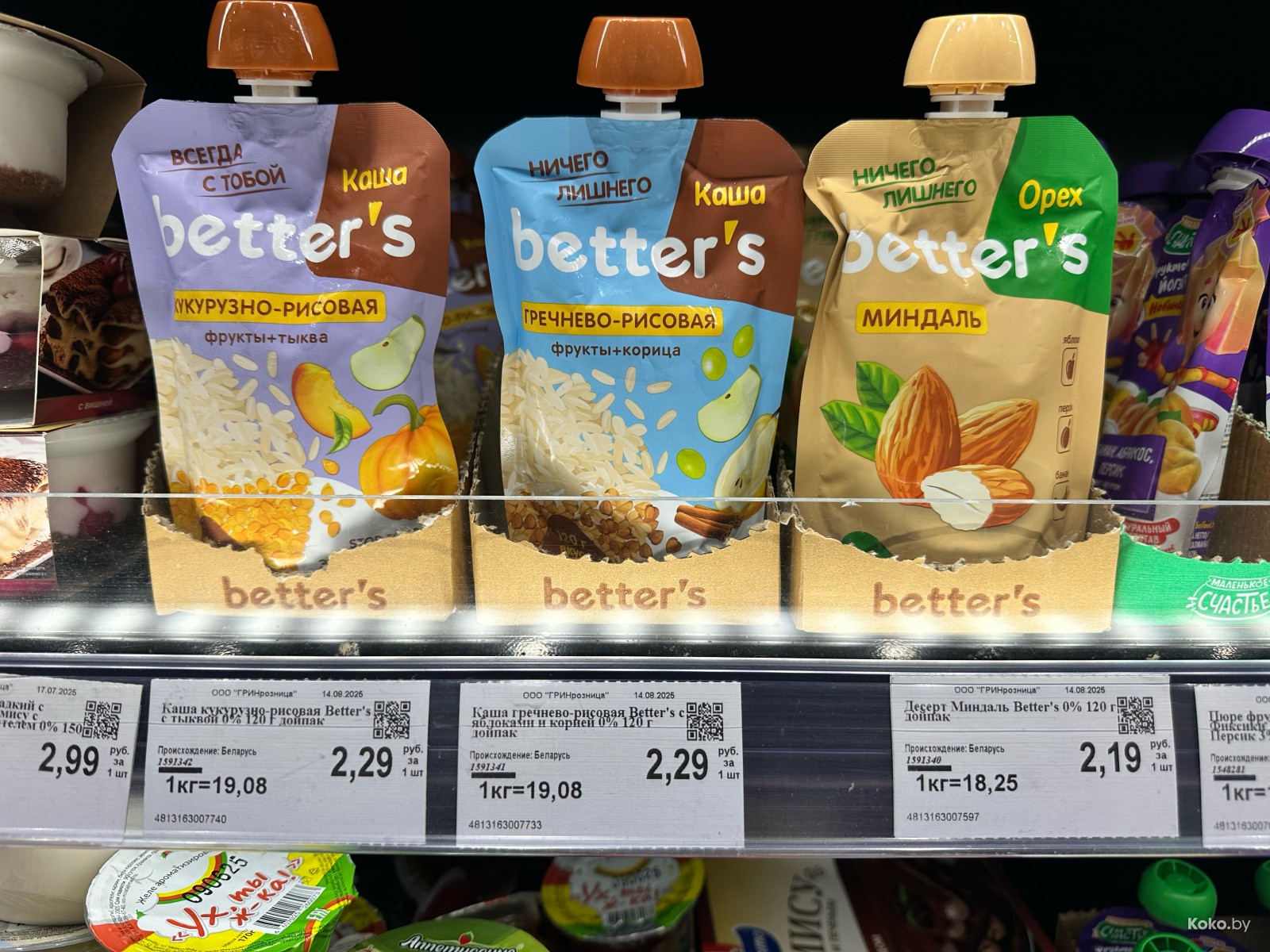 В «Грине» нашёл по 2,29р за каши и по 2,19р за ореховые десерты.