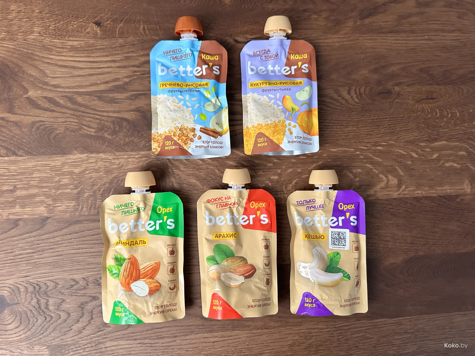 Тезисами и по делу: в паучах таких сочетаний с орехами, кашами и фруктами у нас ещё не запускали, поэтому вспомните про мою наводку на «Betters», когда пойдёте в магазин, и вы не пожалеете.