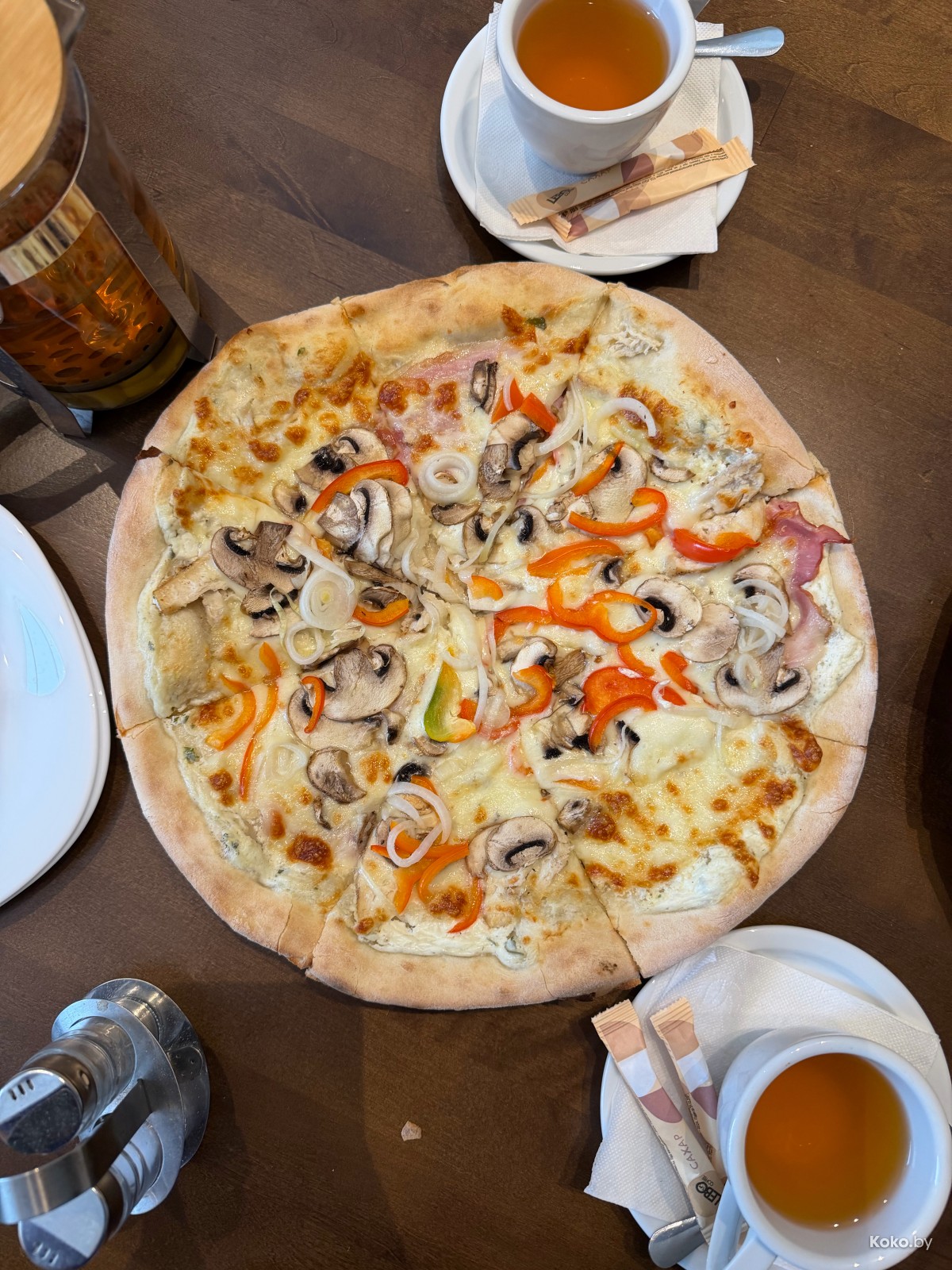 После катания рекомендую подкрепиться вкуснейшей пиццей на дровах в кафе рядом «Ля Форест». Советую заказать Мясную за 28р/640г.