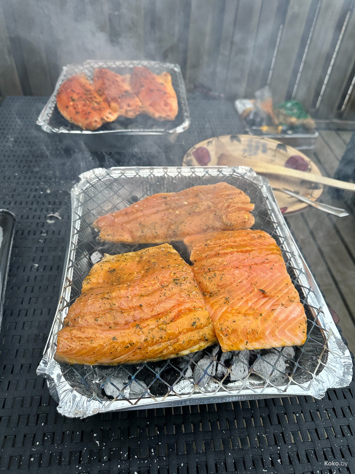 Выбор охренетительный, есть абсолютно всё! Мы делали упор на уже замаринованное: рёбрышки, лосось, баранина и курица.